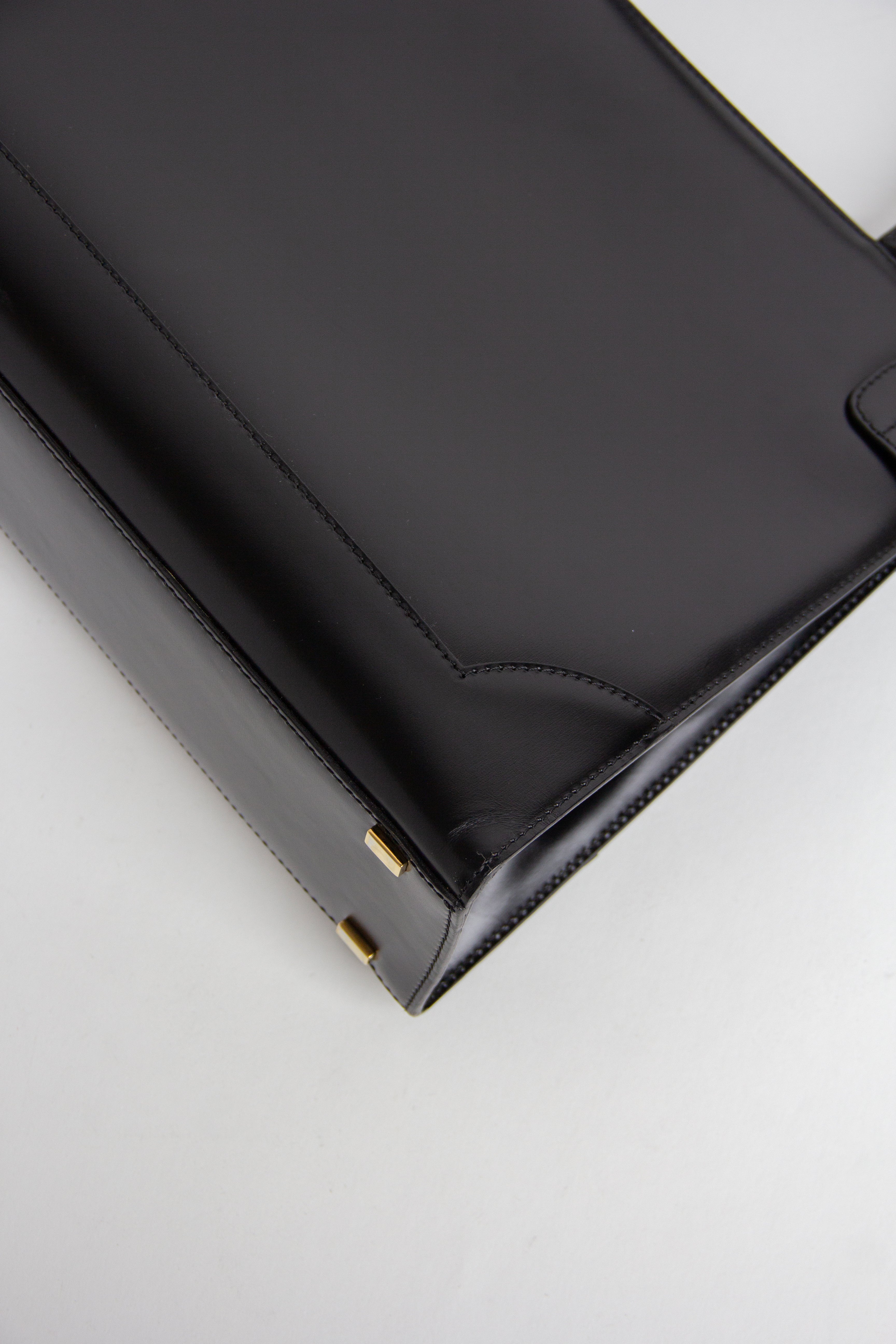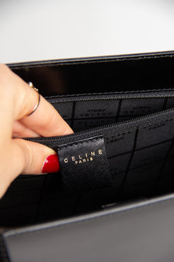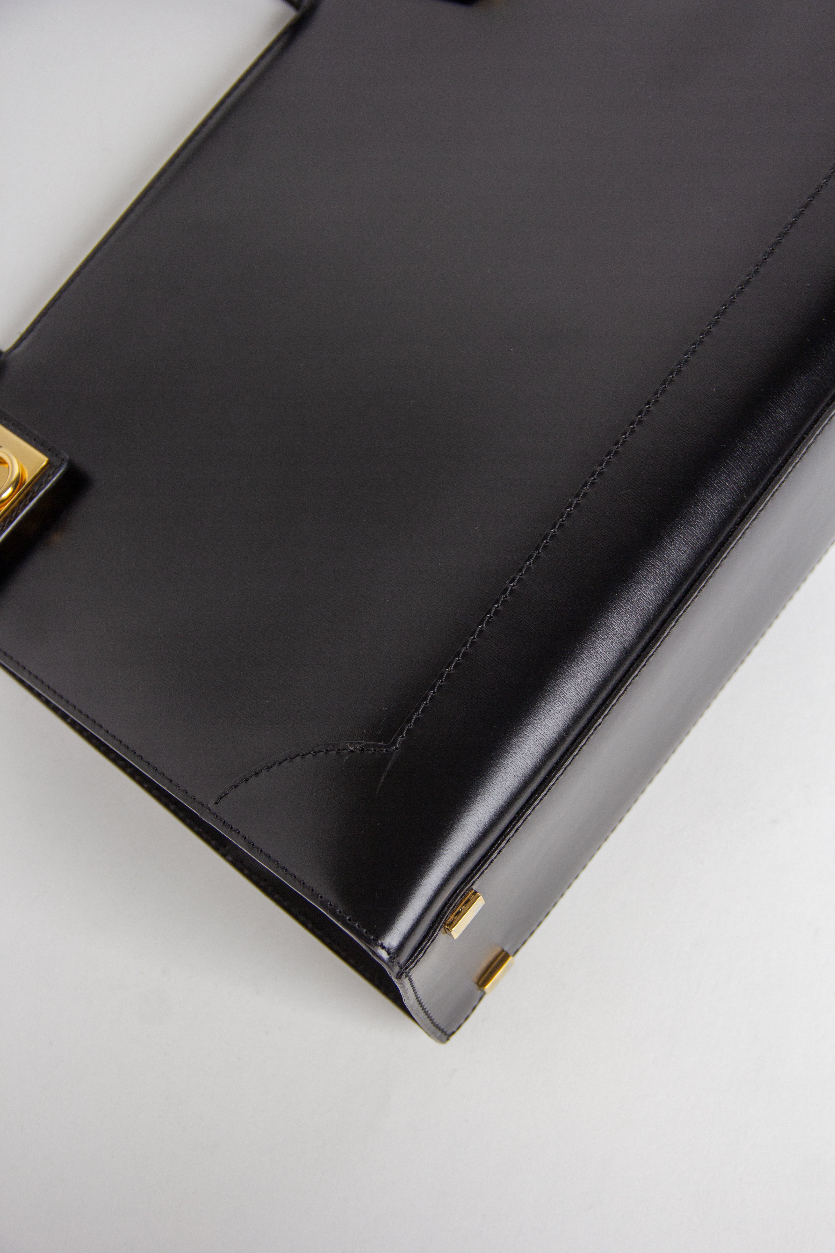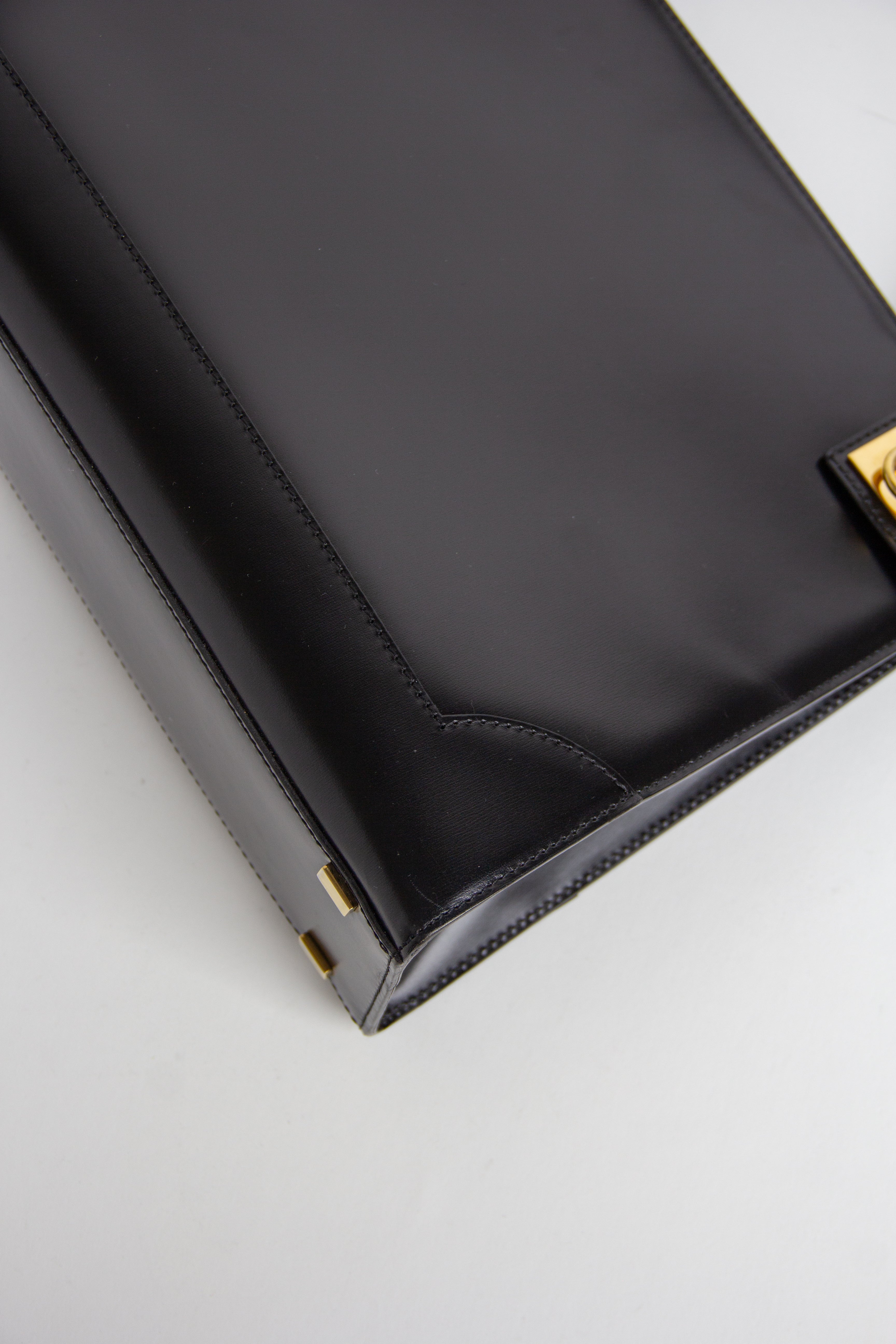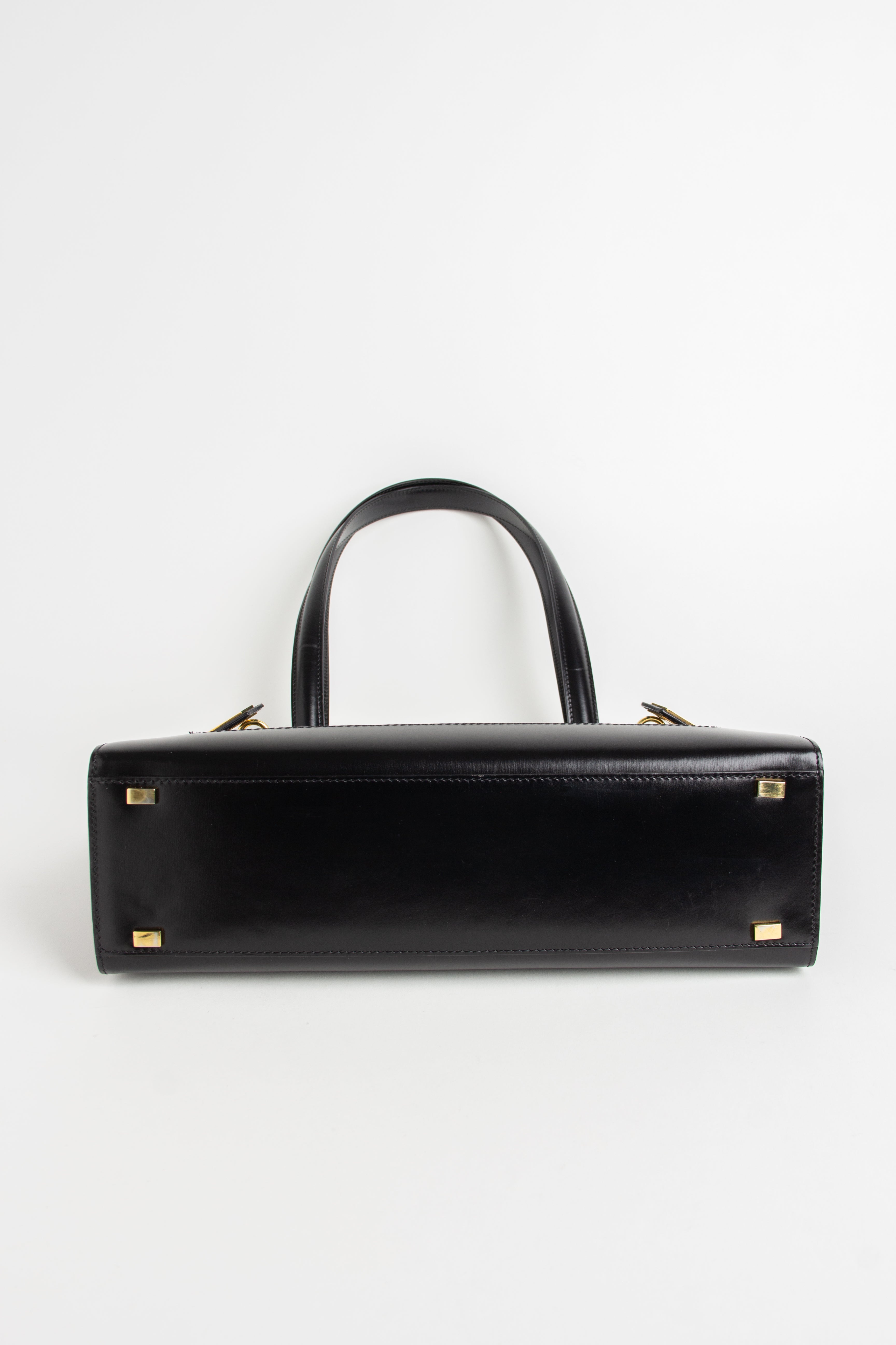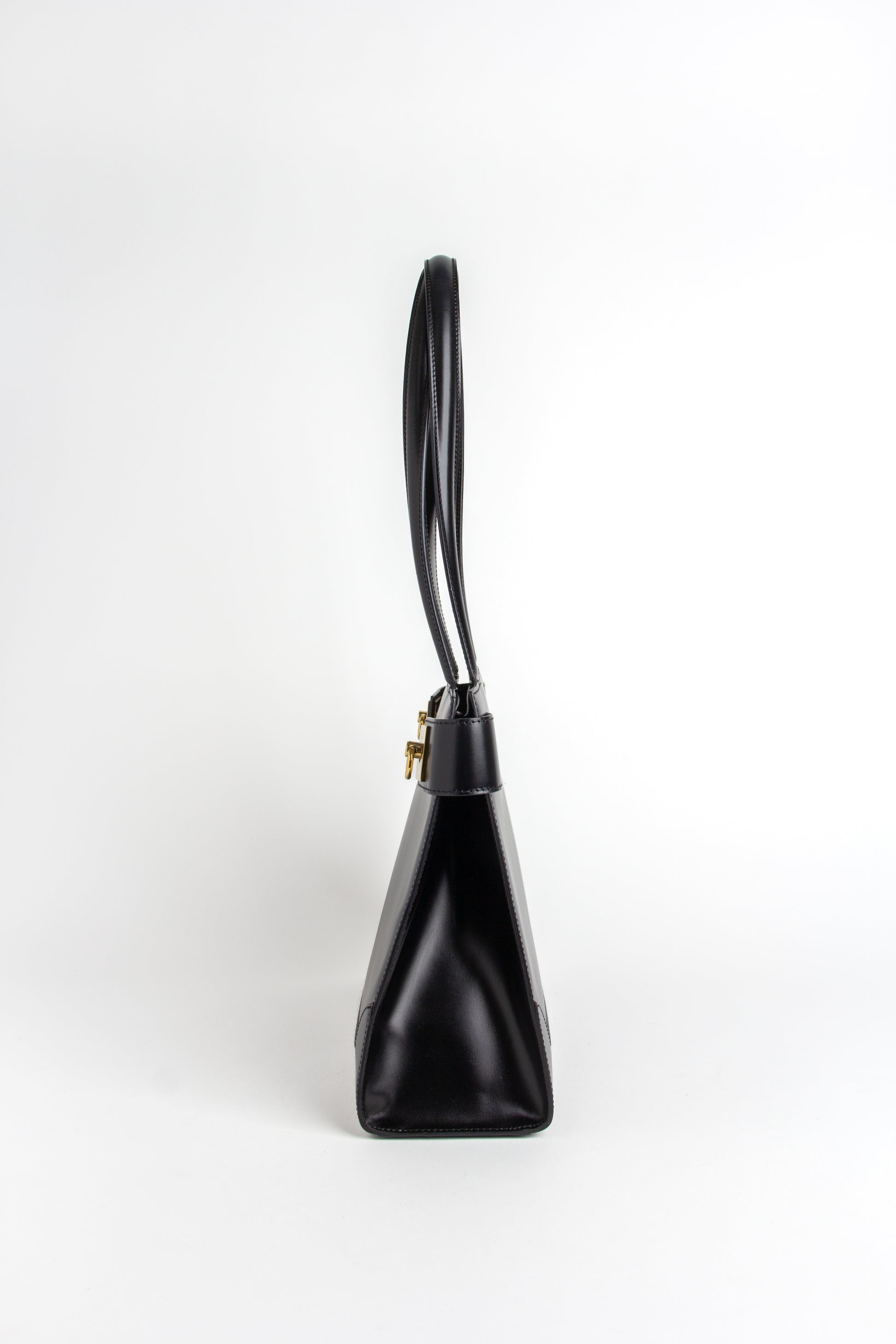 Incredible, elegant black Celine shoulder bag with gold Gancini detailing on the sides. Unclasp the Gancini hardware ...