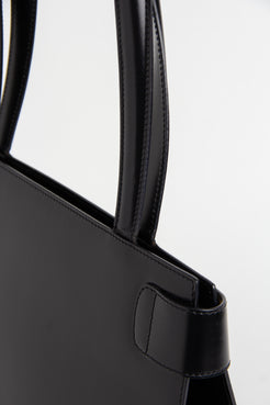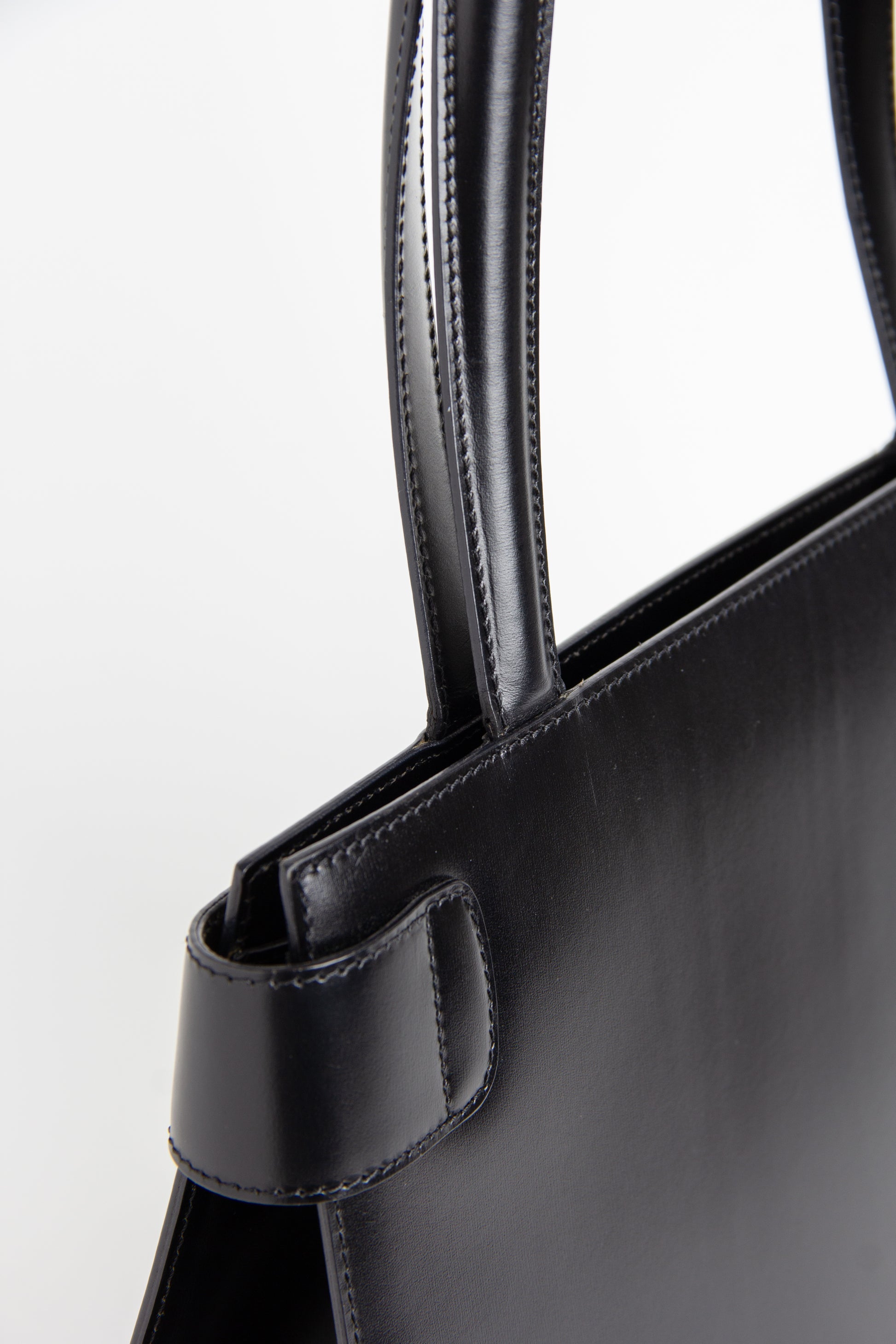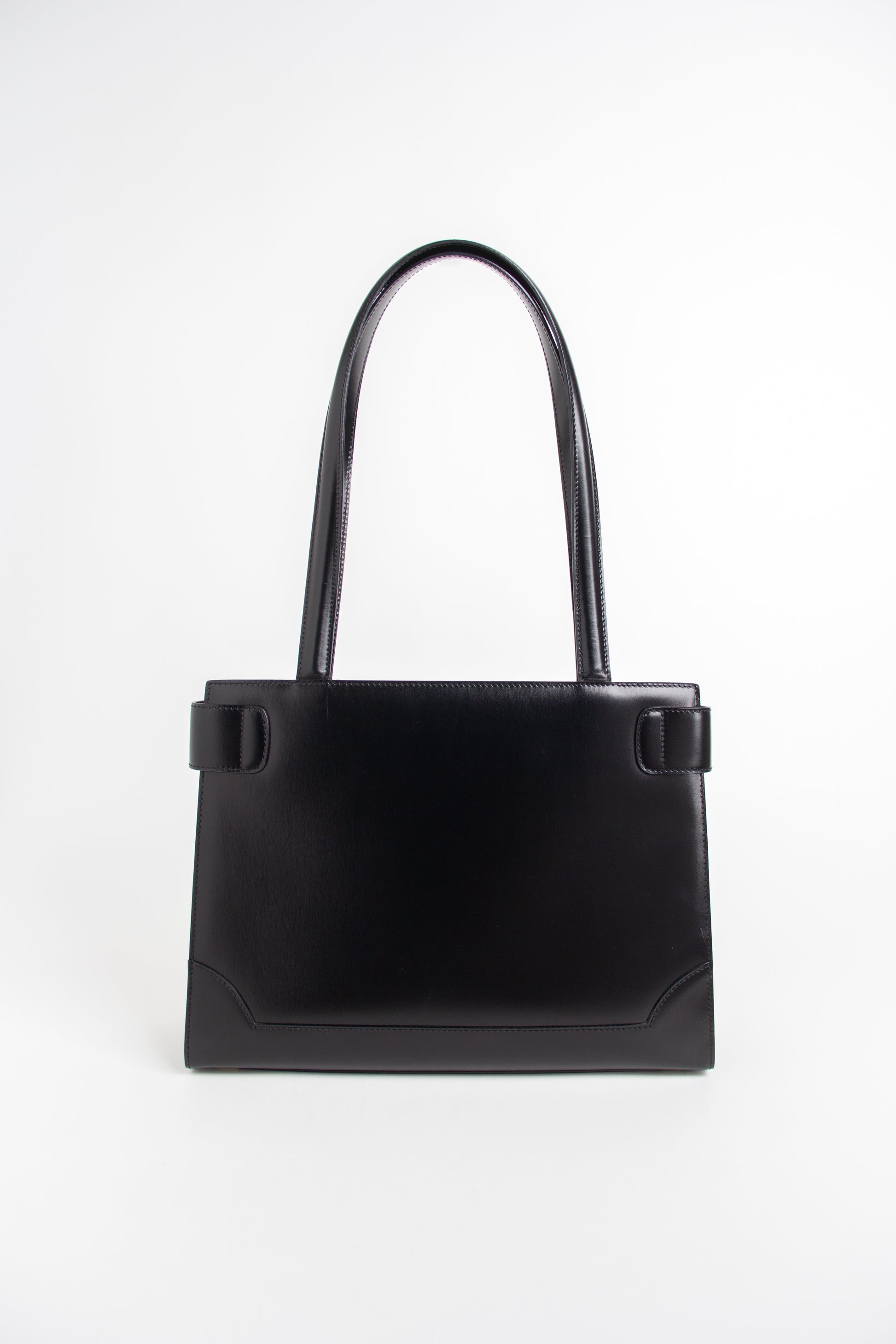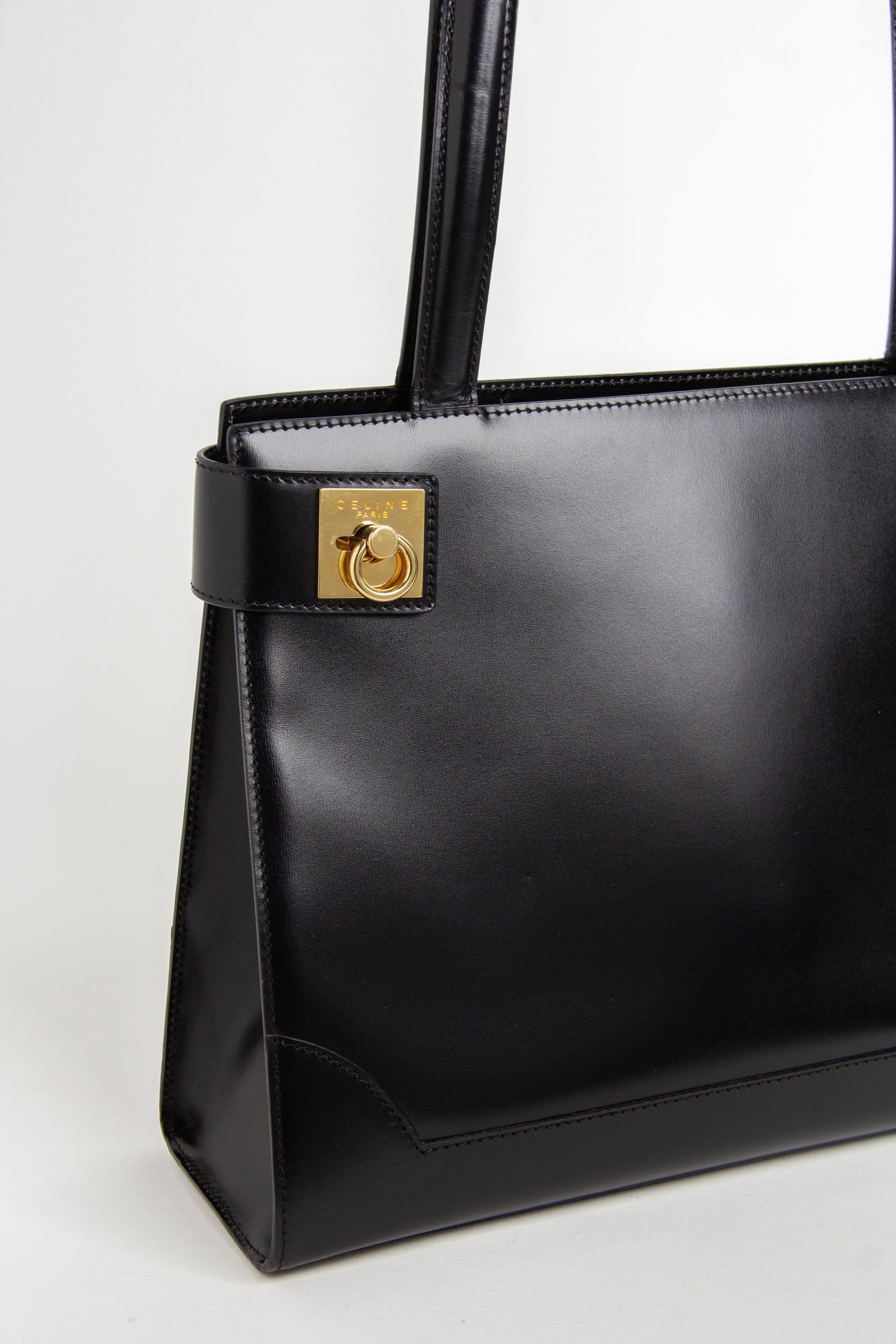 Incredible, elegant black Celine shoulder bag with gold Gancini detailing on the sides. Unclasp the Gancini hardware for a more relaxed, spacious feel or keep them closed for a sleek, structured look. A simply beautiful bag you can wear for years to come.