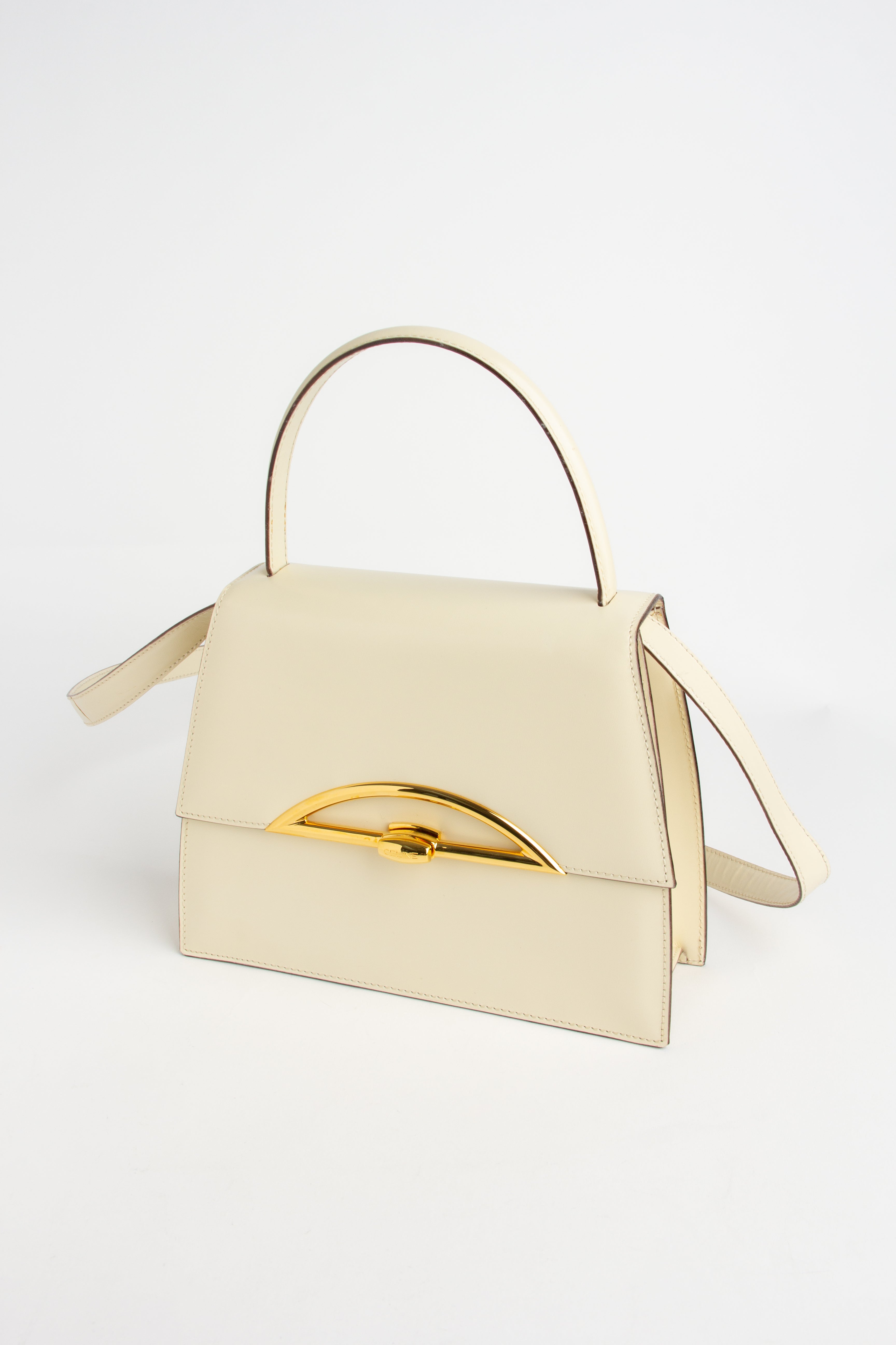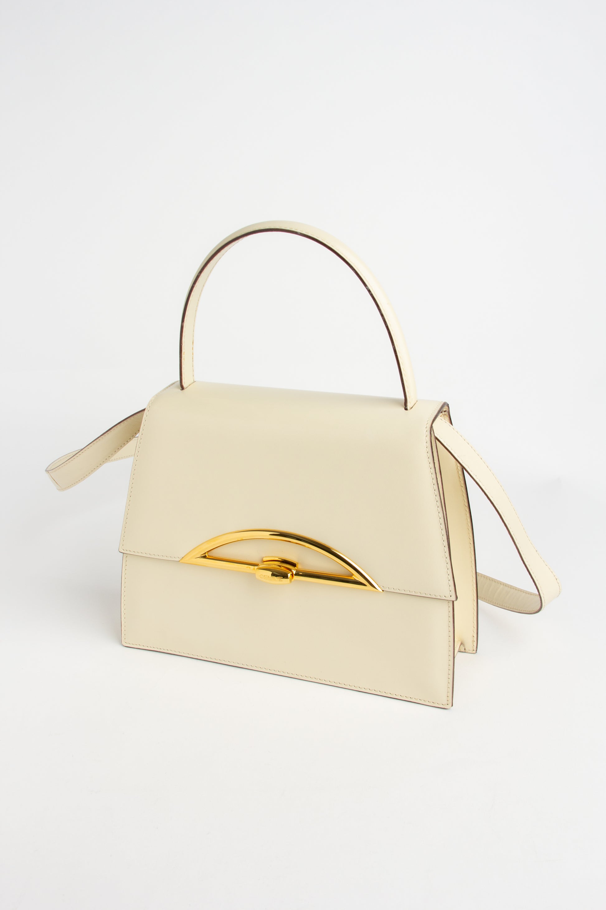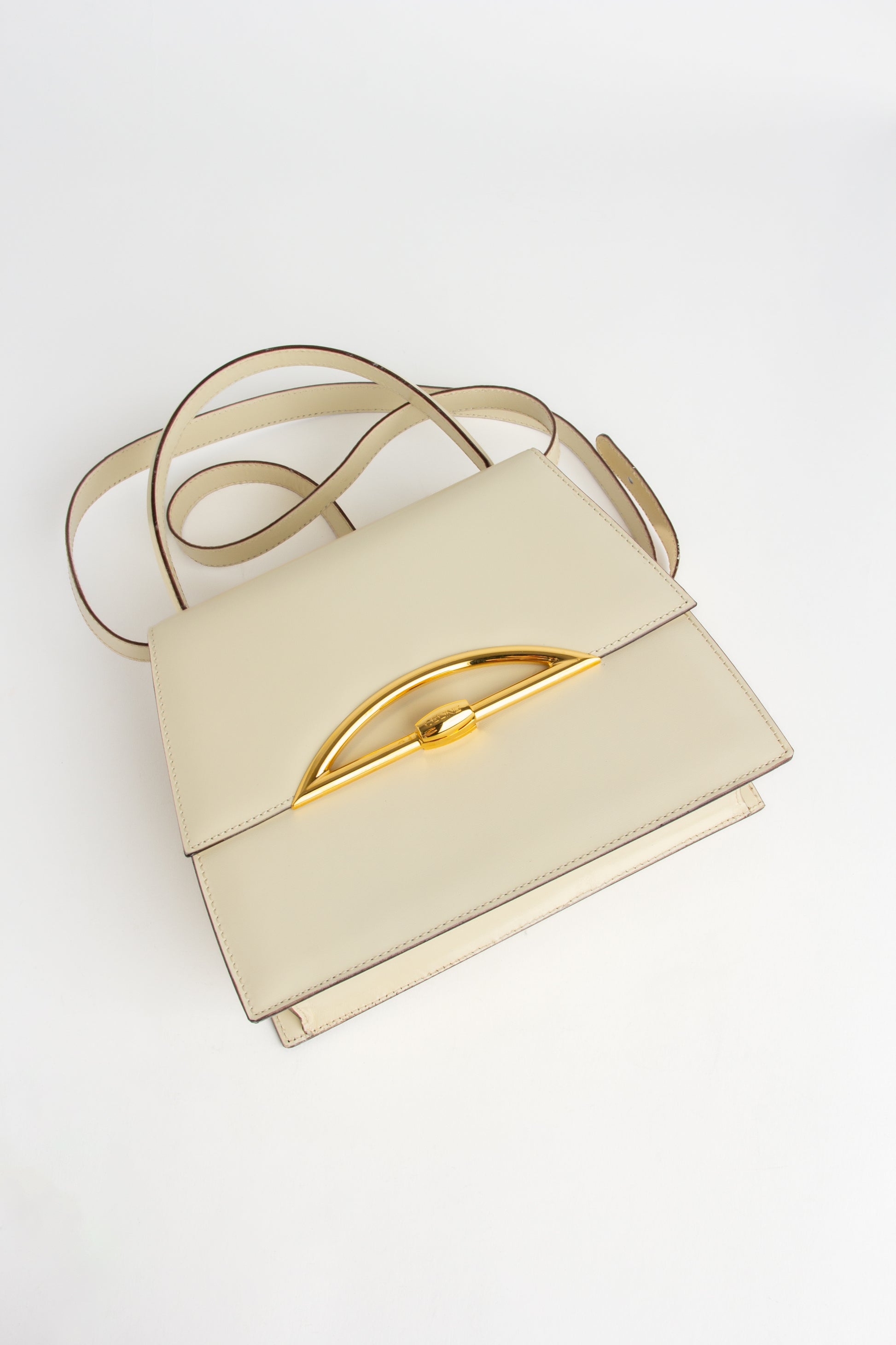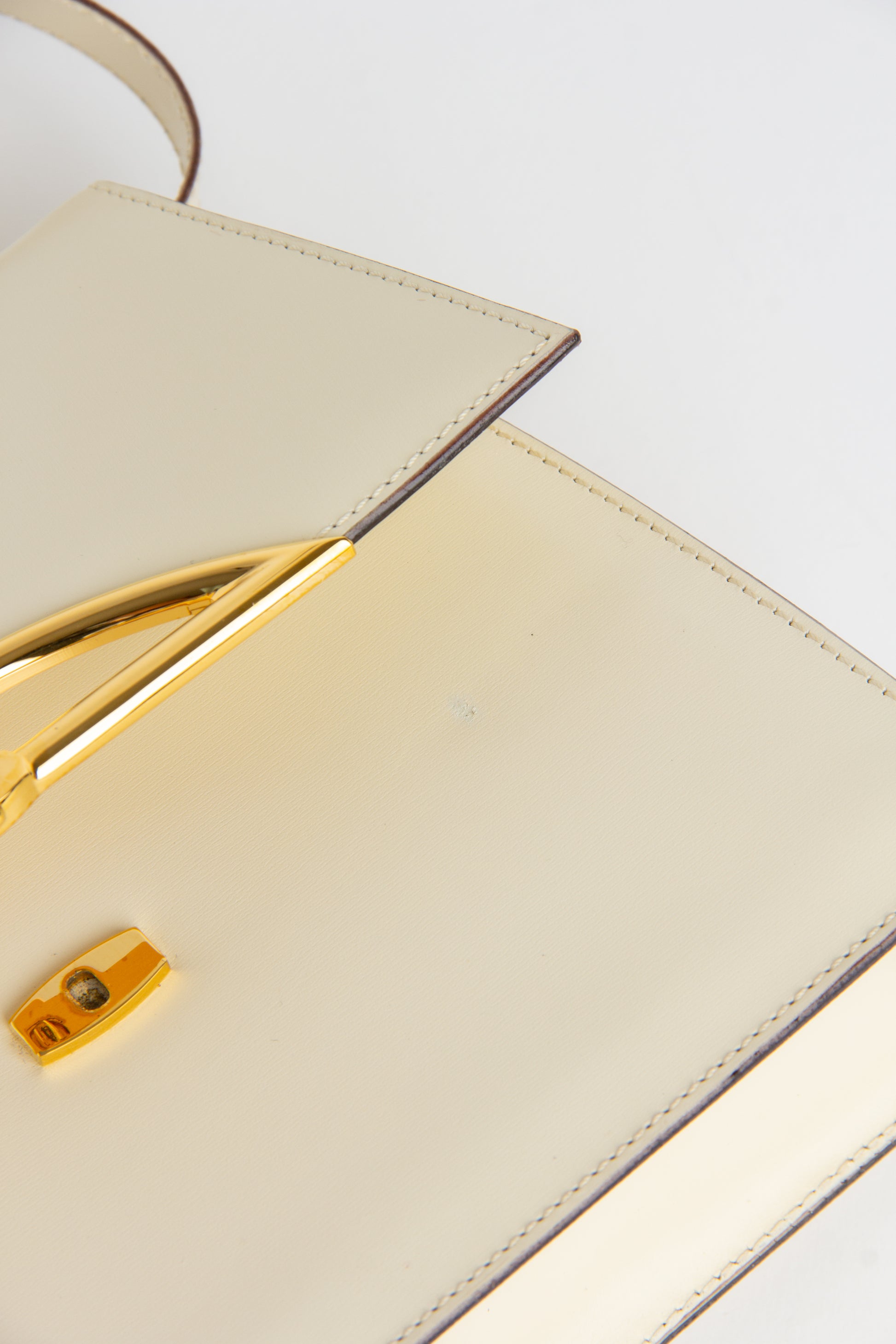 Adorable, elegant little cream Celine bag with gold hardware and a turnlock closure. Can be worn as a handbag or crossbody.