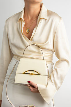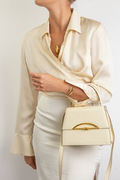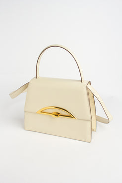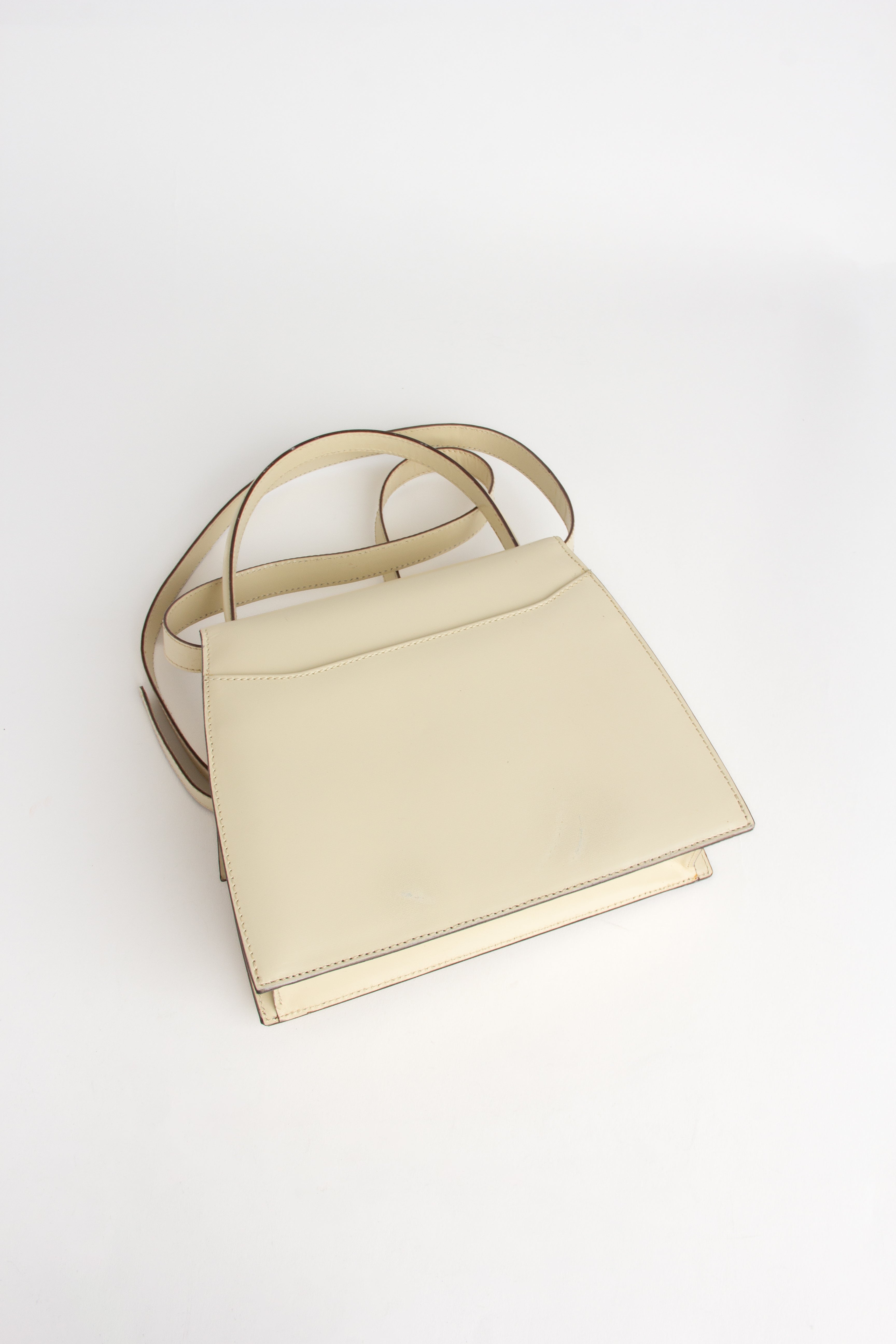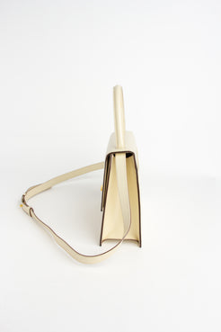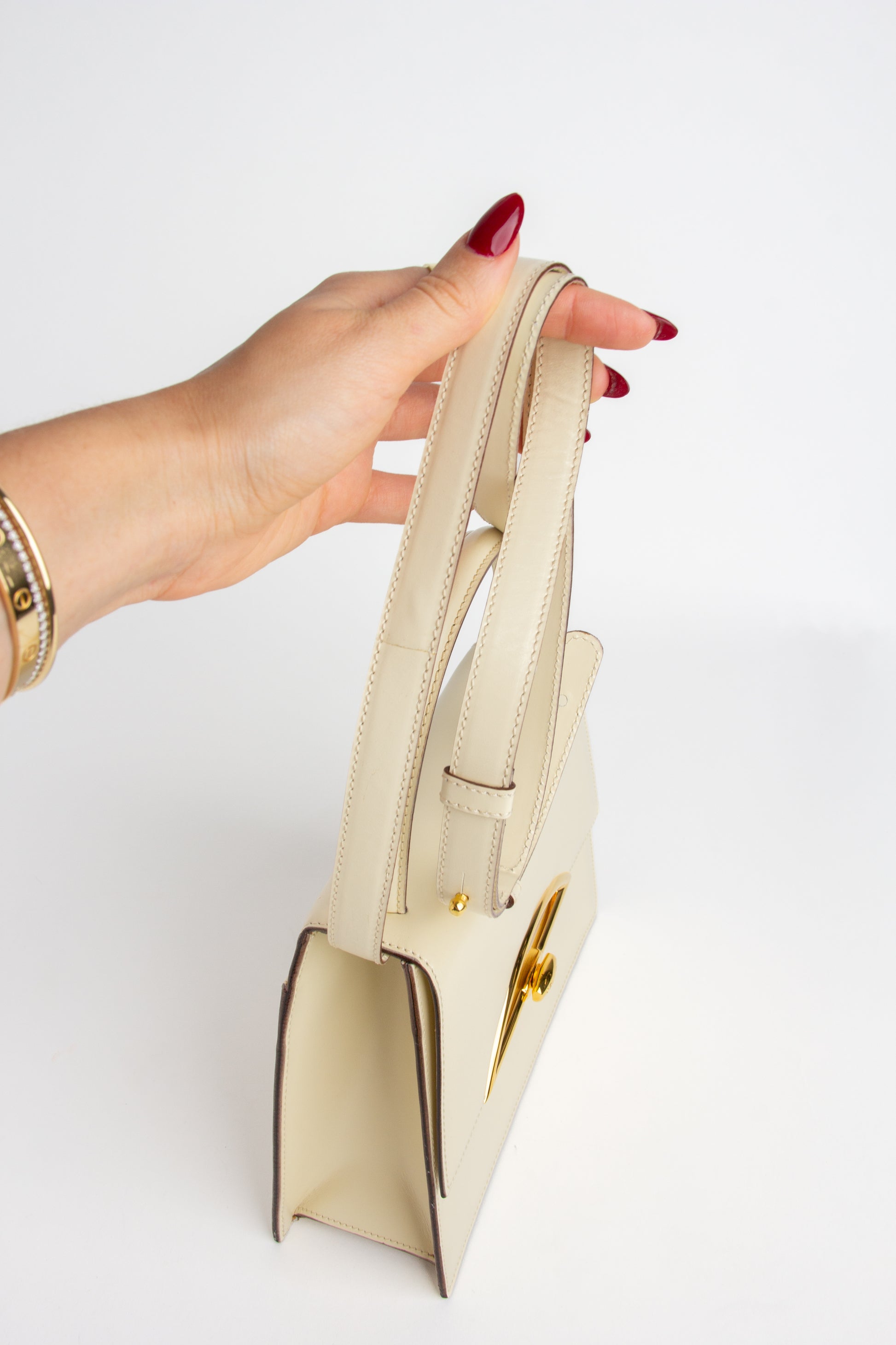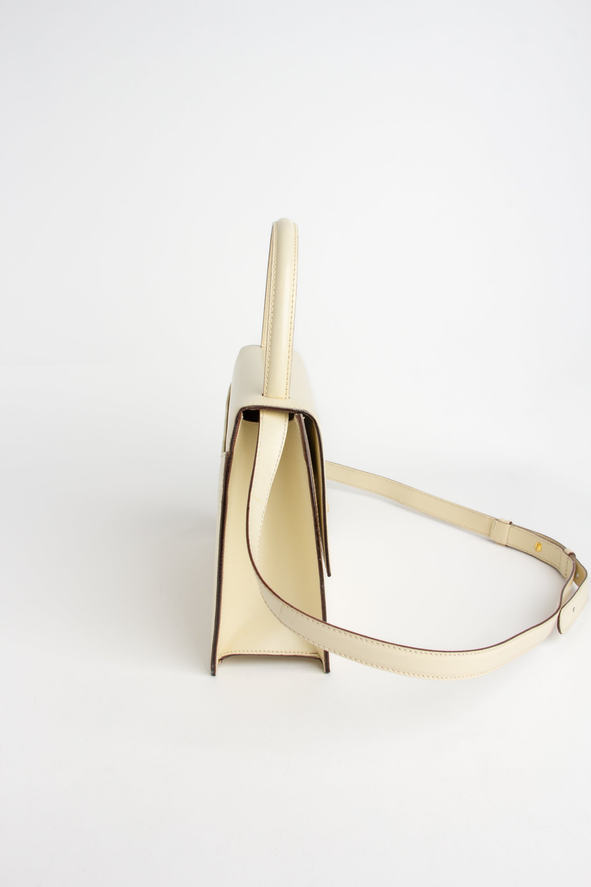 Adorable, elegant little cream Celine bag with gold hardware and a turnlock closure. Can be worn as a handbag or crossbody.