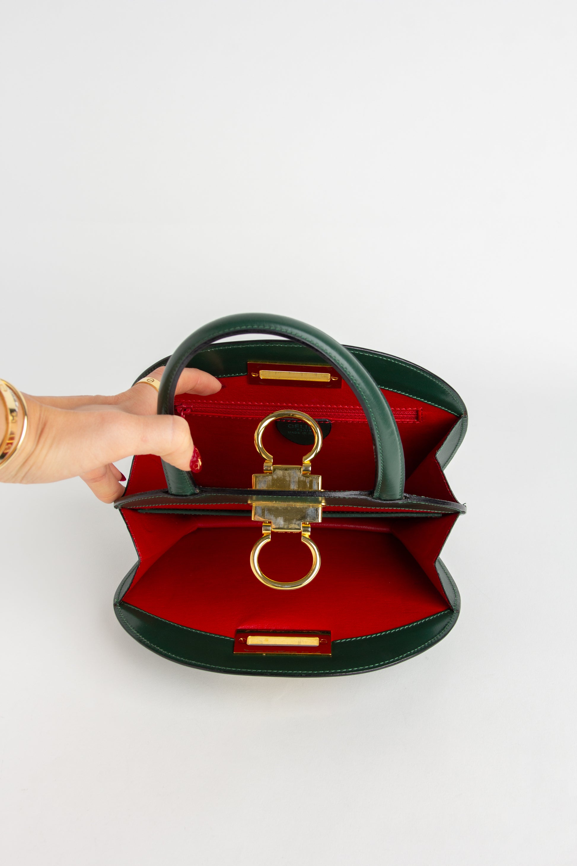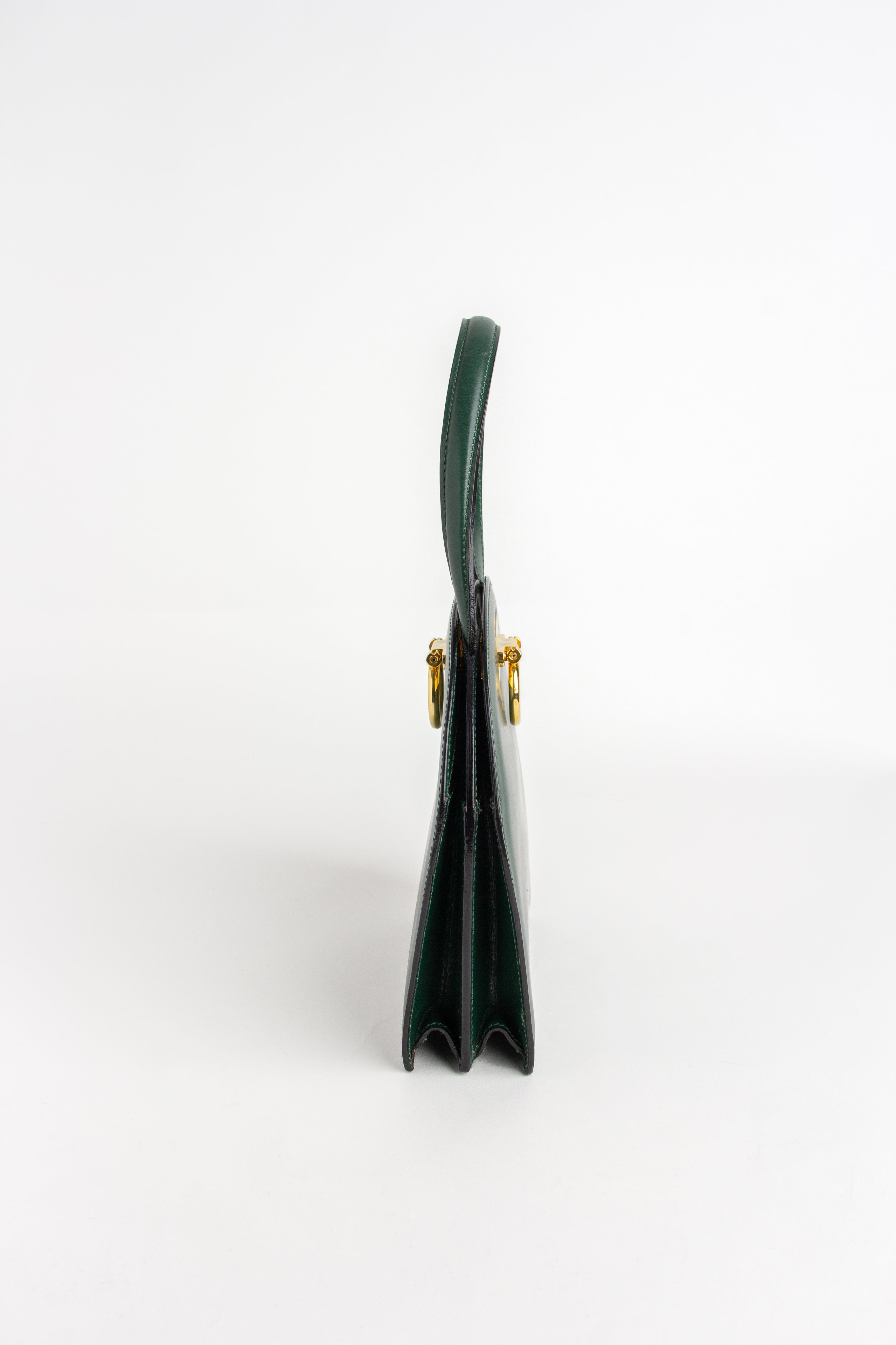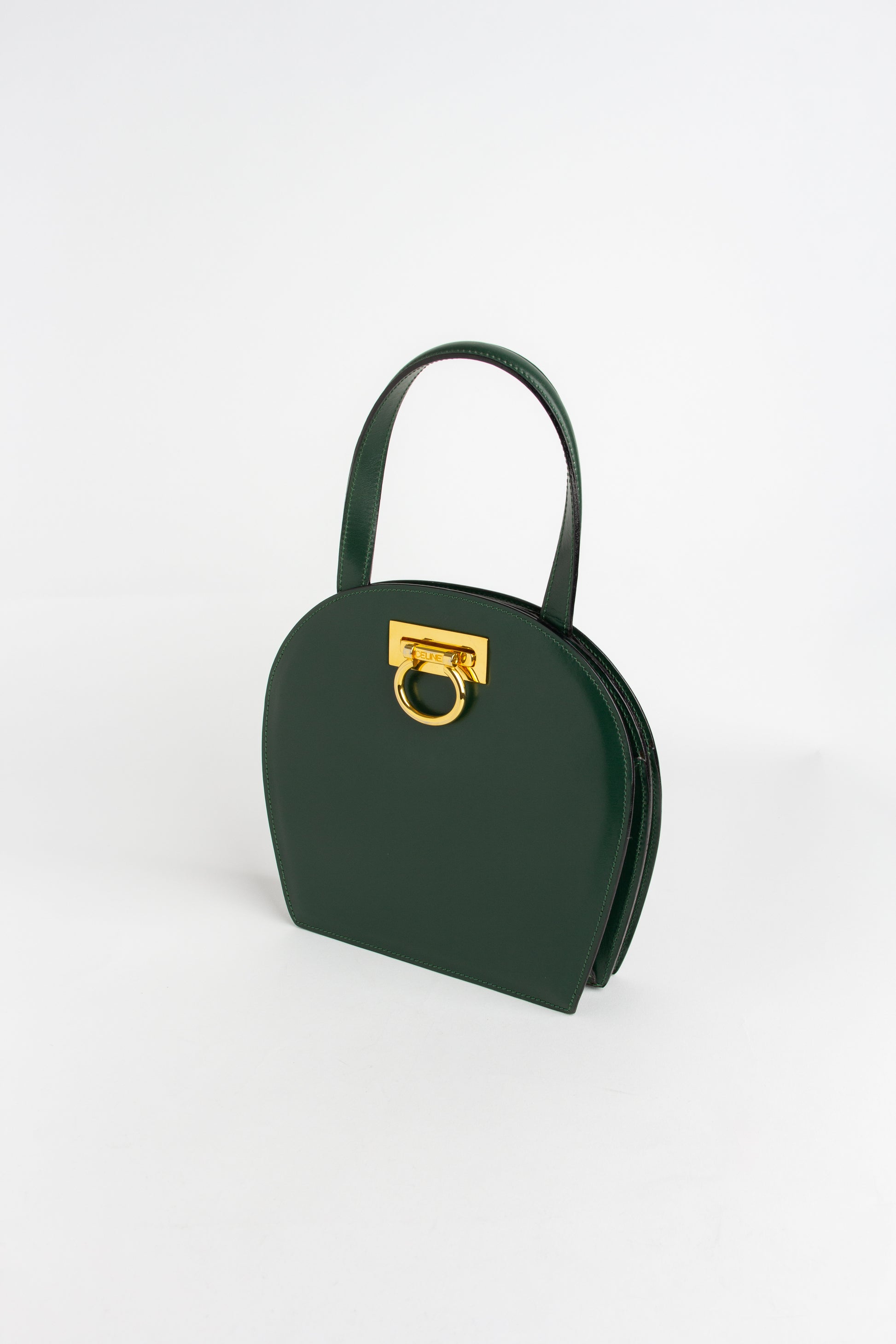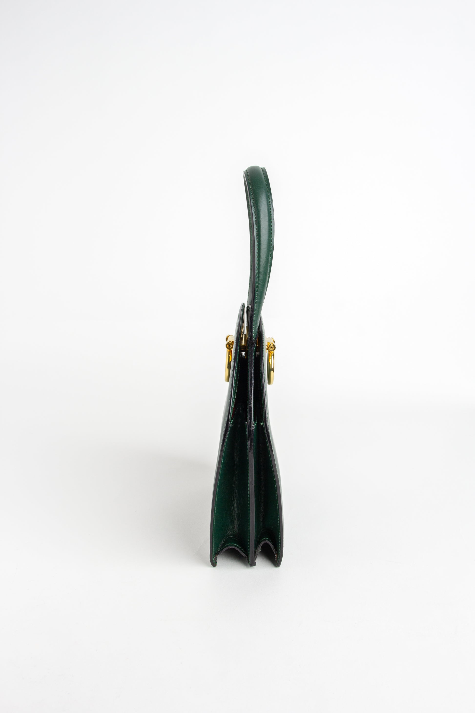 Unique and adorable vintage Celine mini bag in a rare dark green color. Gold Gancini closures on both sides. A beautiful color to pair with fall / winter looks.