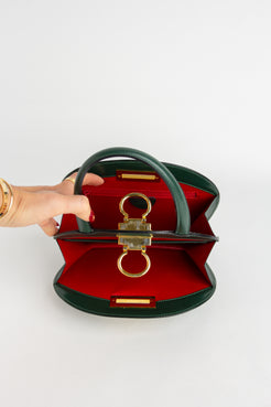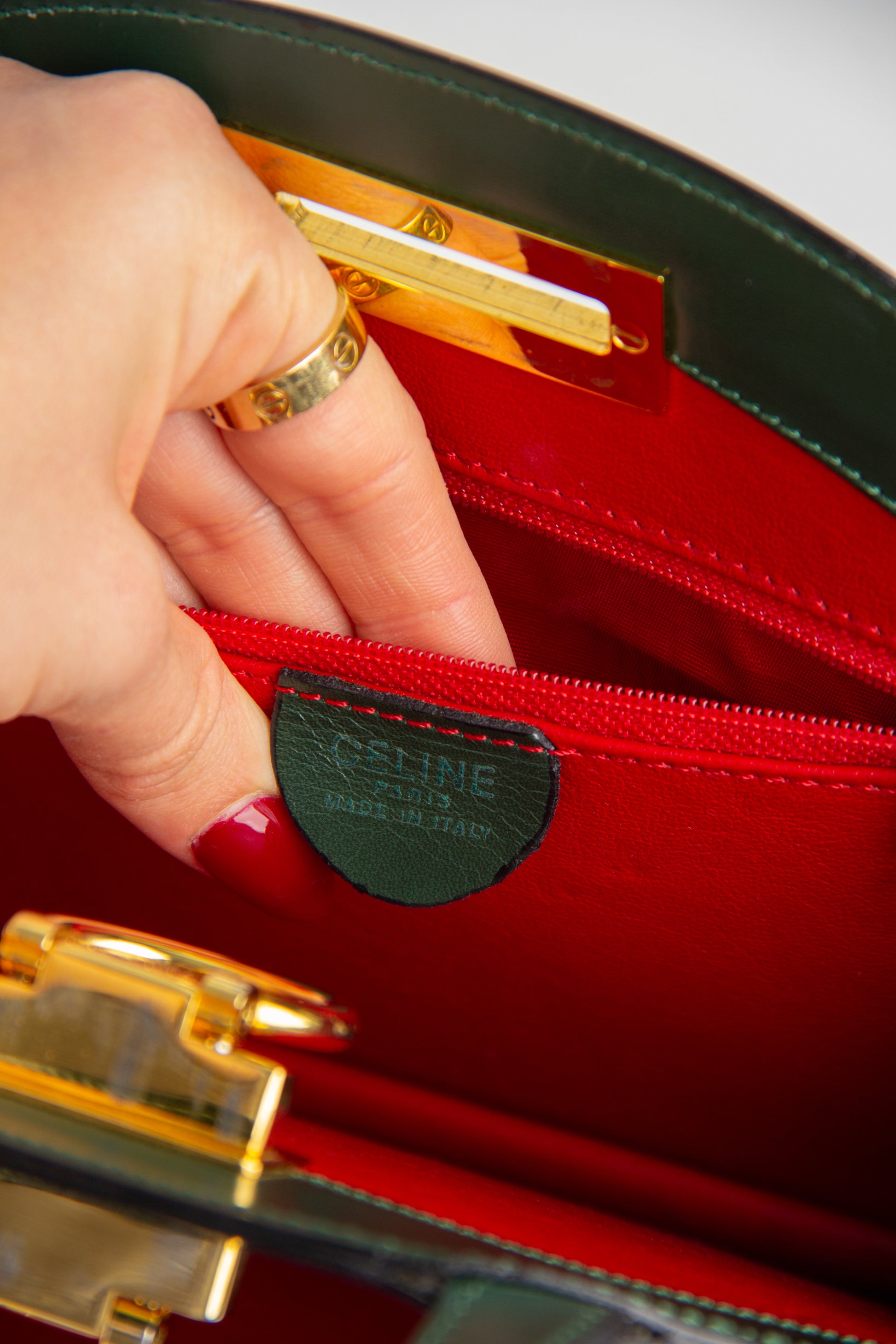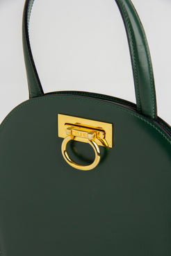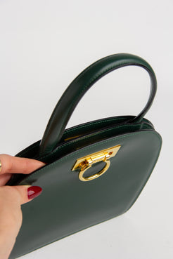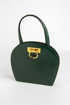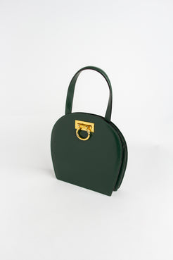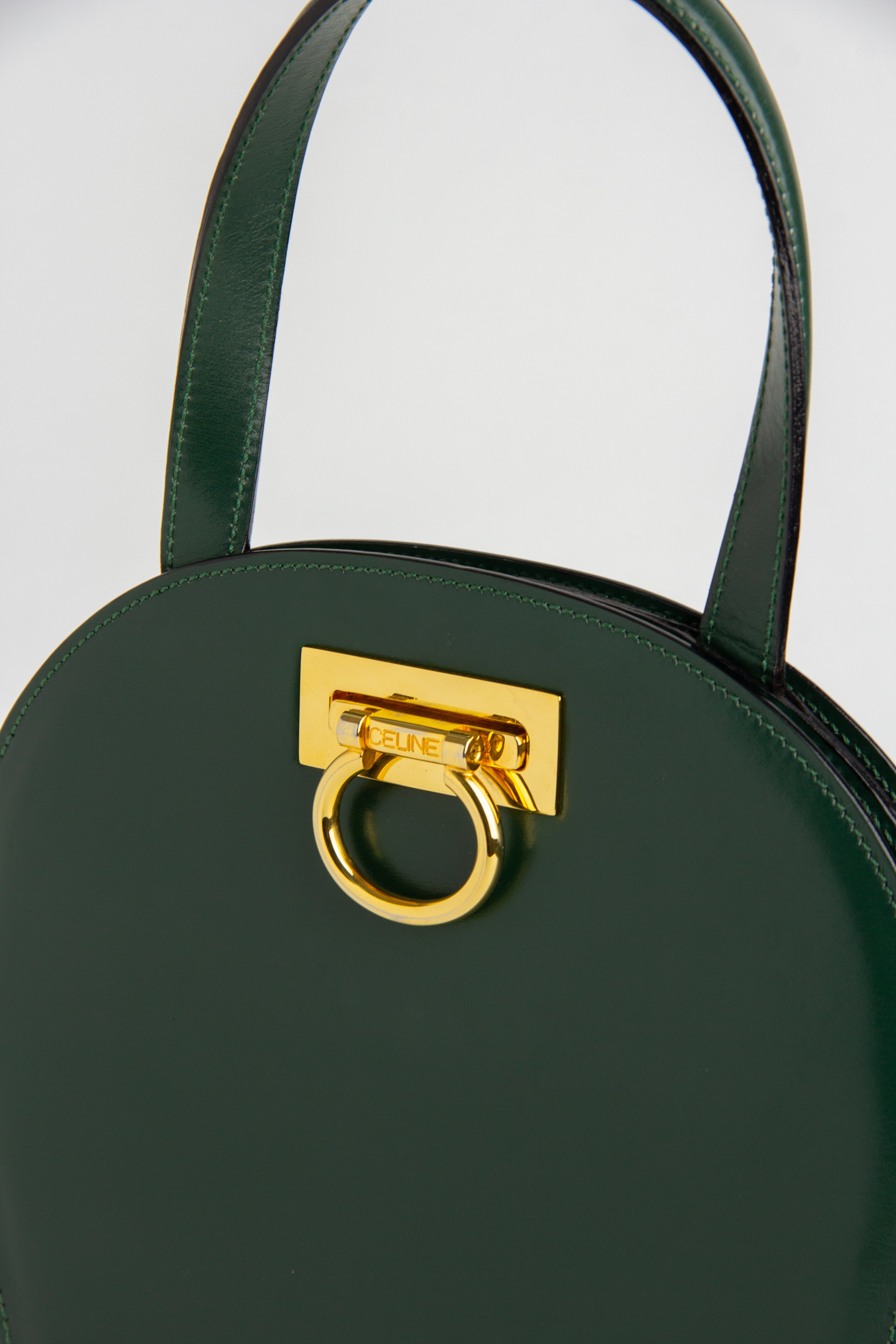 Celine Vintage Dark Green + Gold Gancini Mini Bag