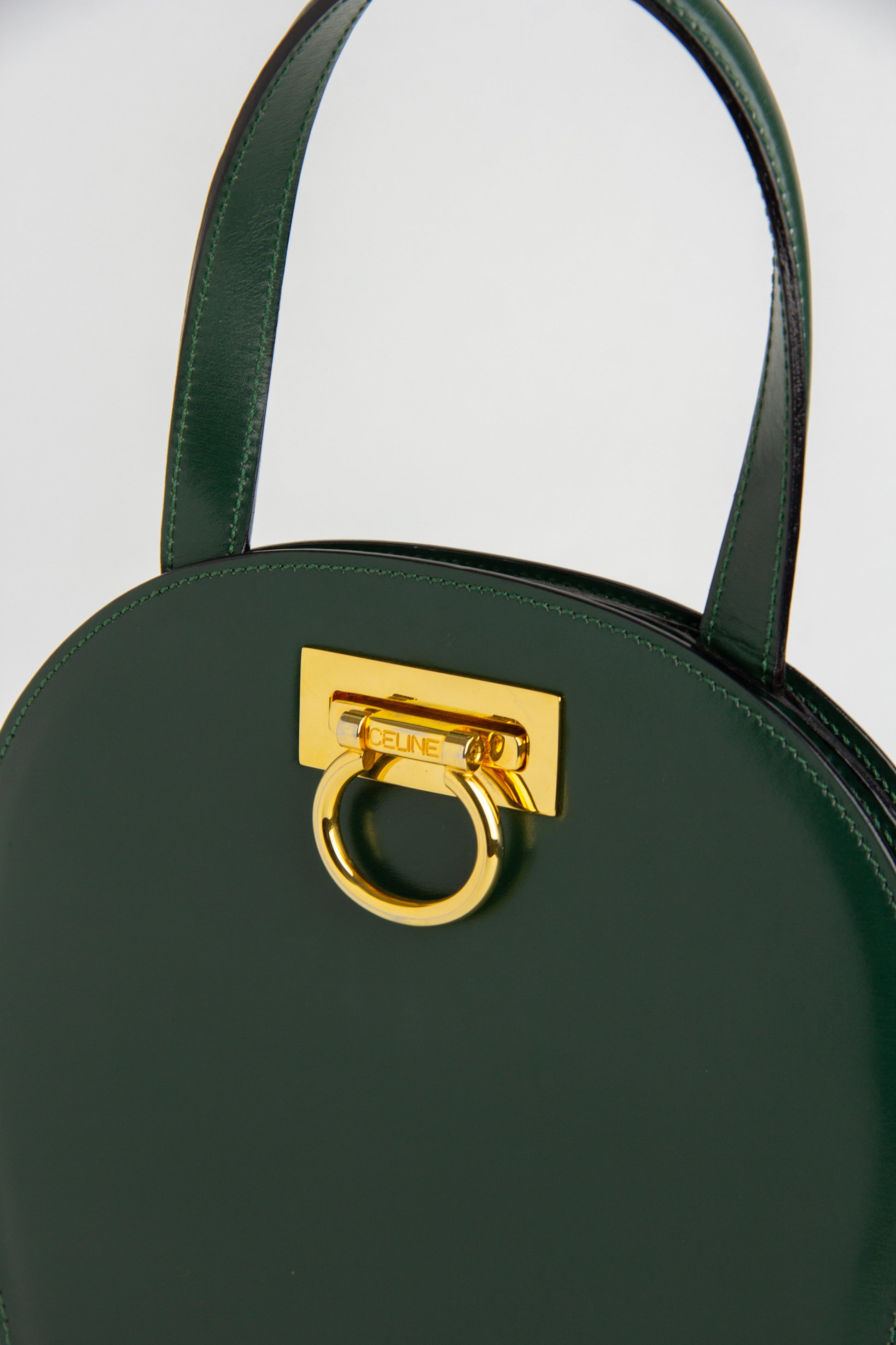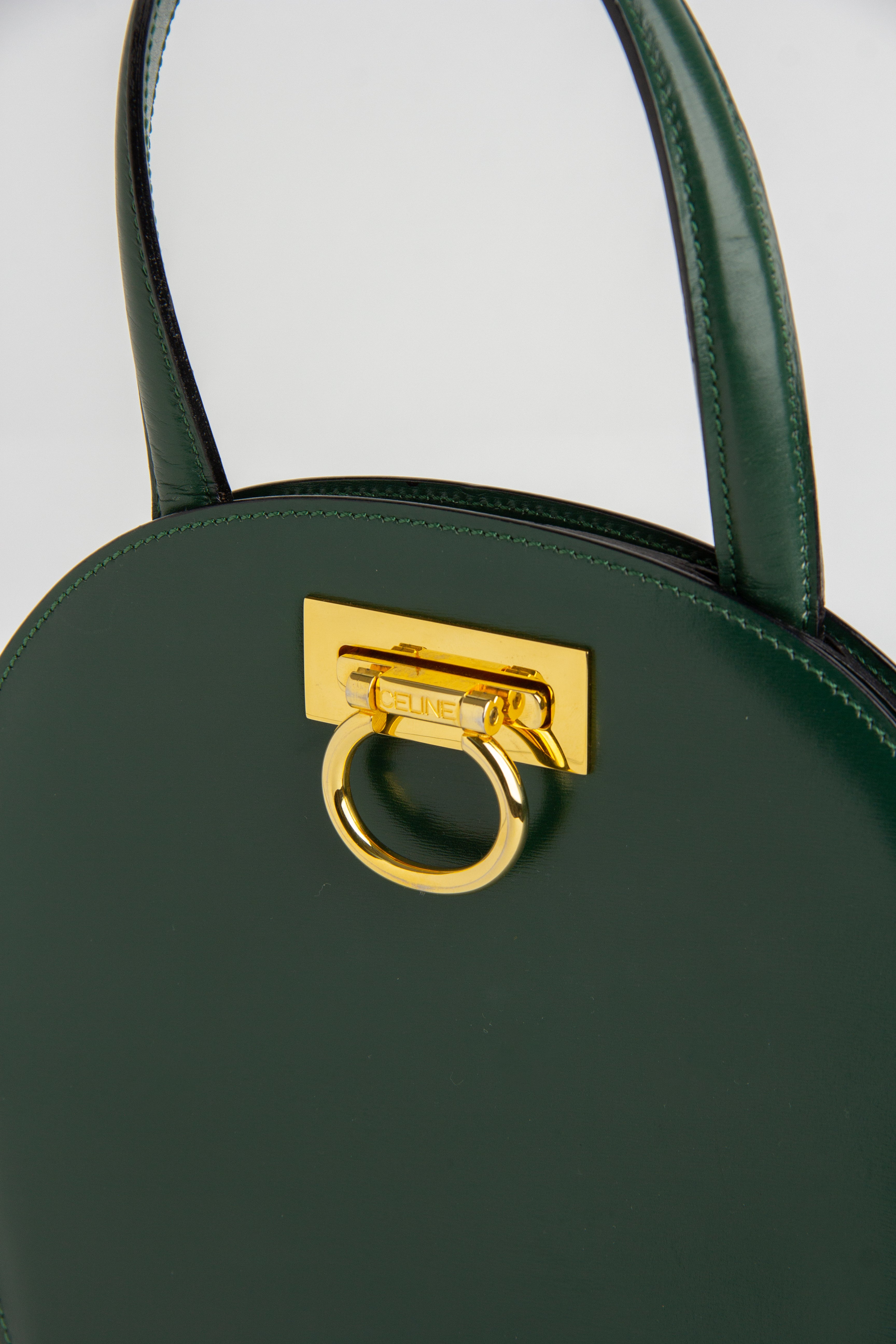 Unique and adorable vintage Celine mini bag in a rare dark green color. Gold Gancini closures on both sides. A beauti...