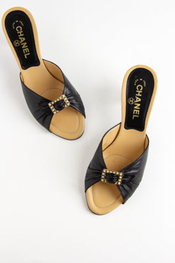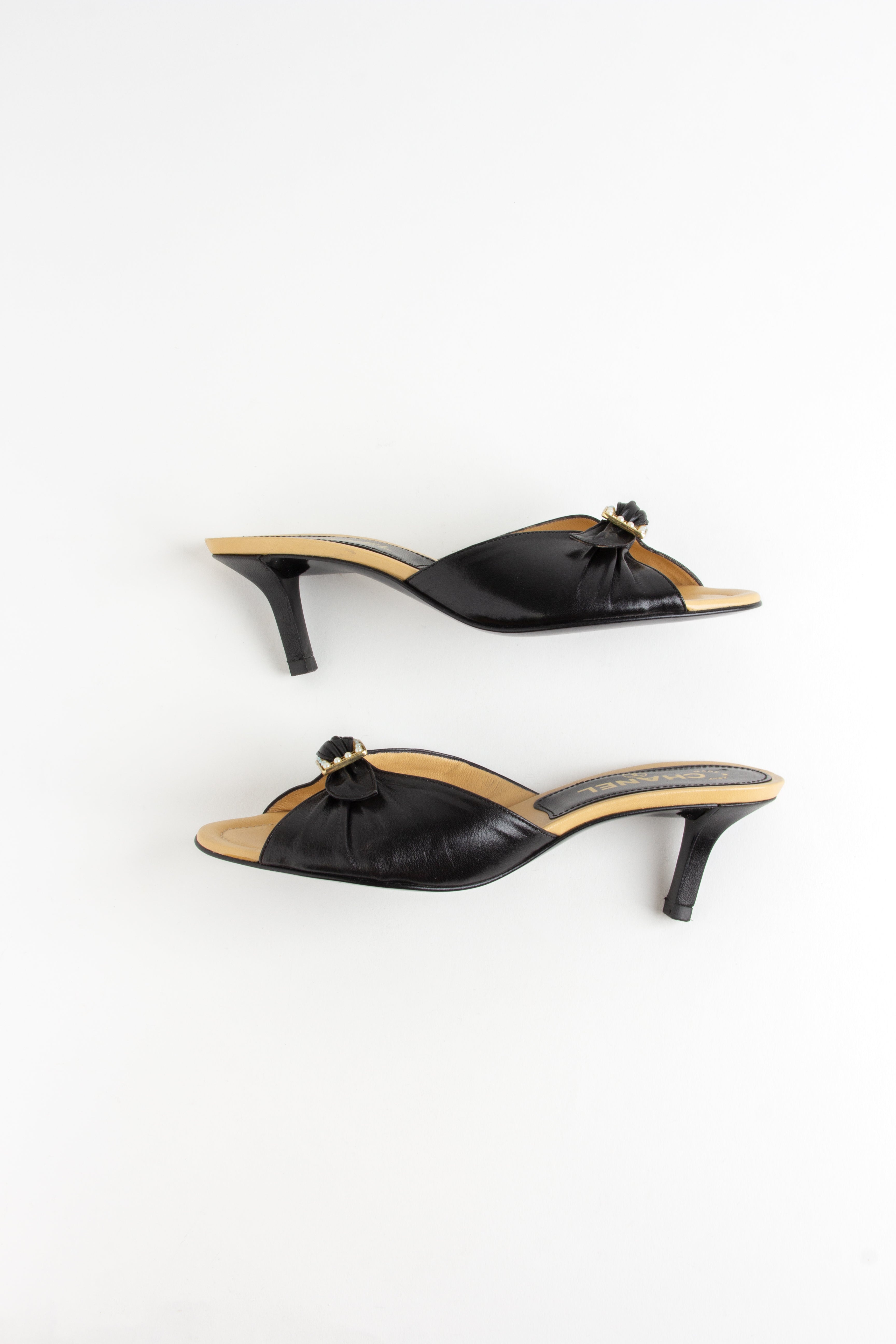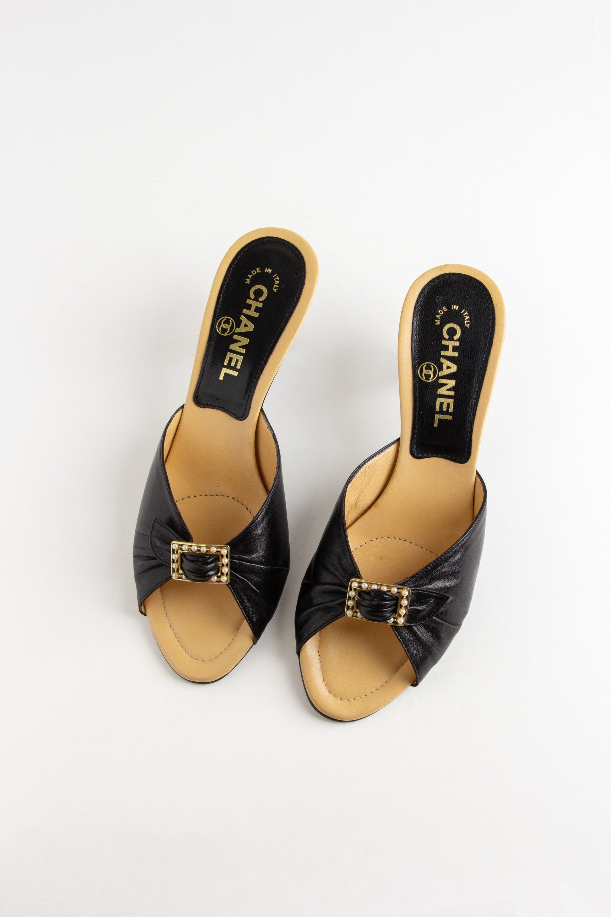 Chanel Black + Beige Pearl Buckle Heels (IT 36.5)