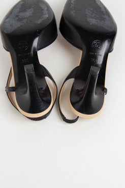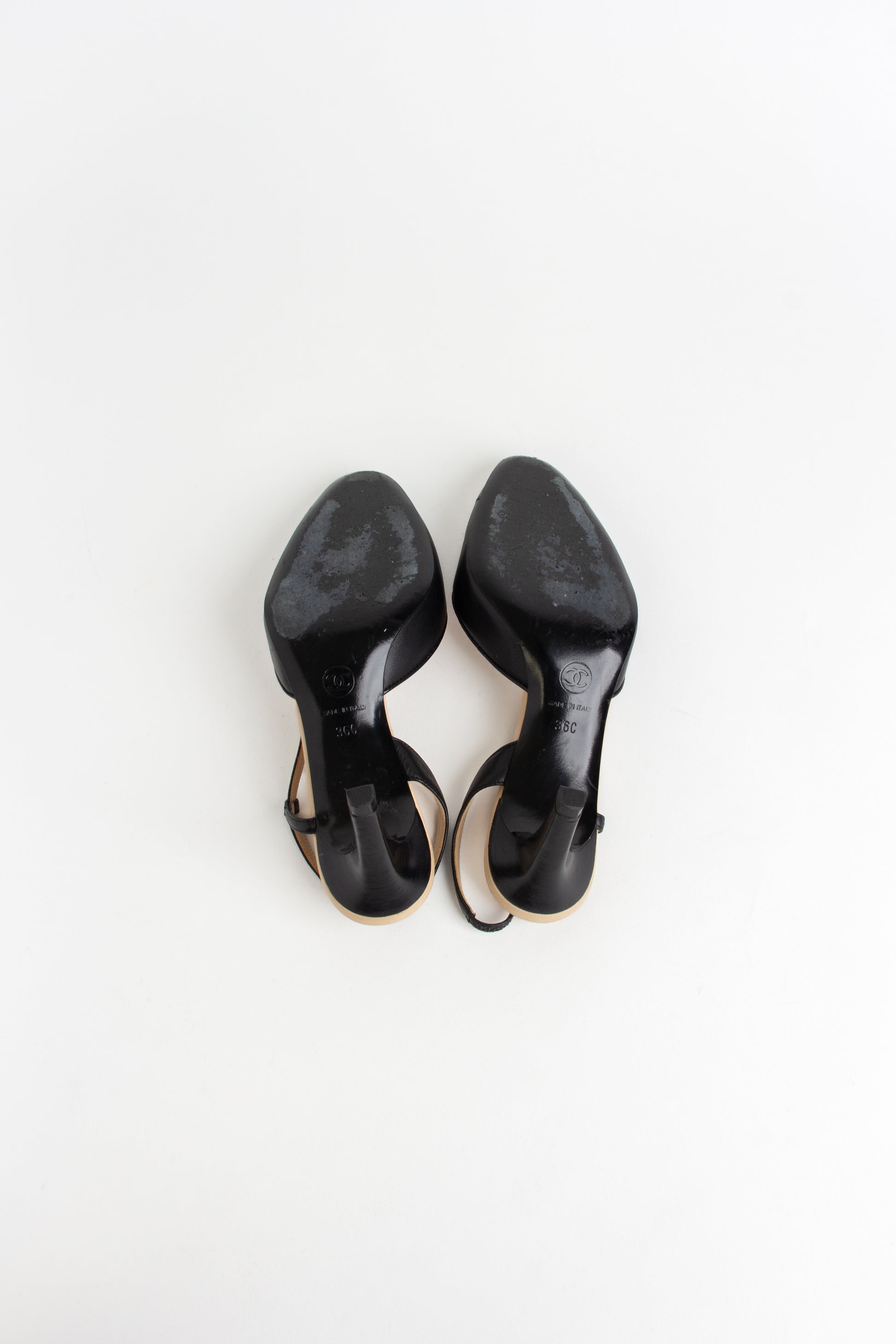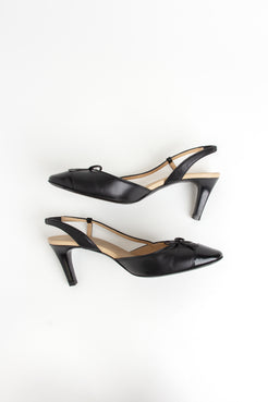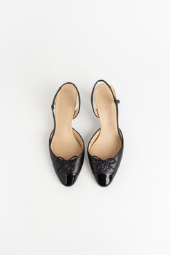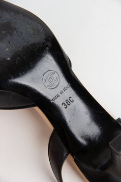 Chanel Black CC Bow Ballerina Slingback Heels (IT 36)