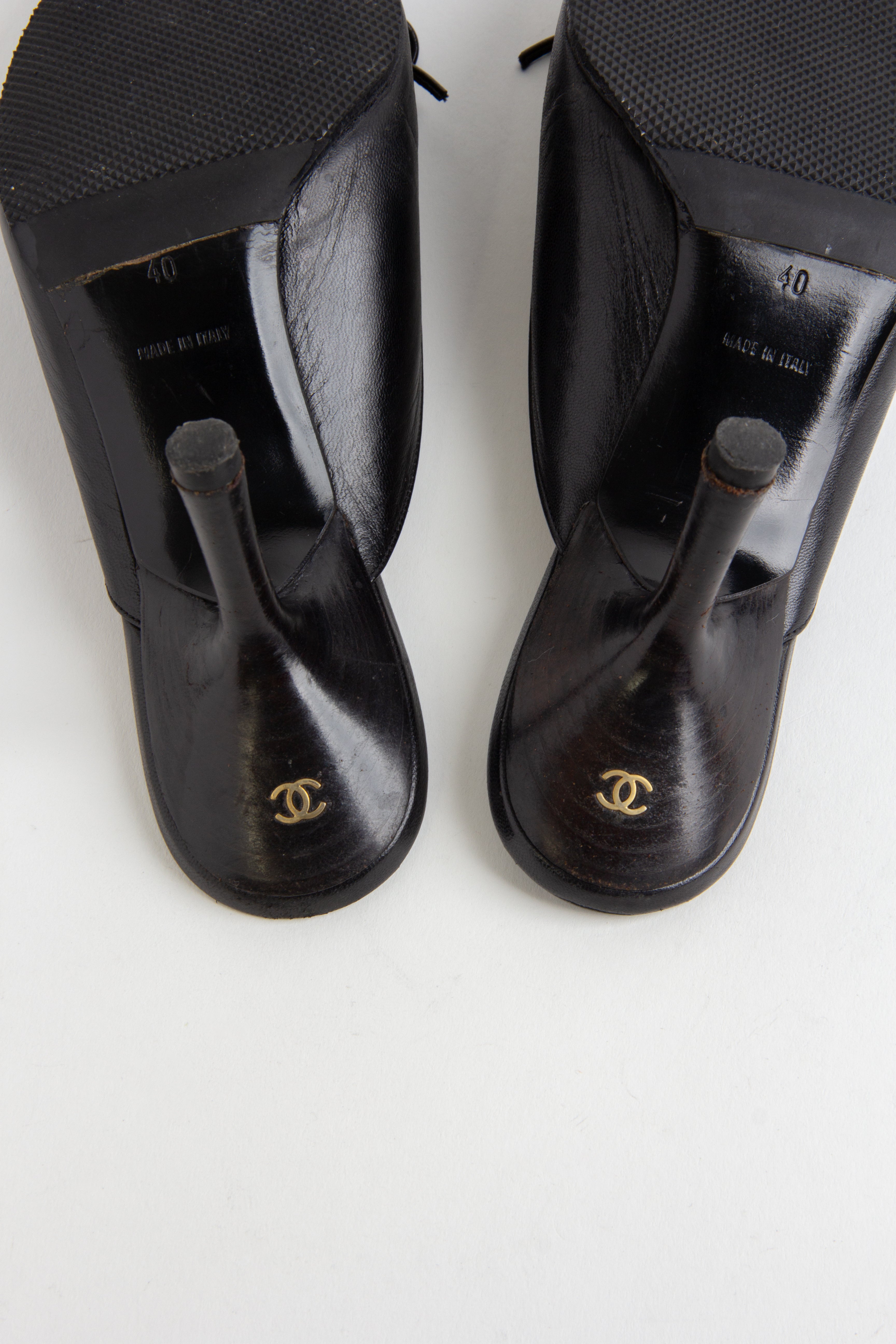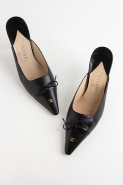Chanel Black CC Bow Mules (IT 40)