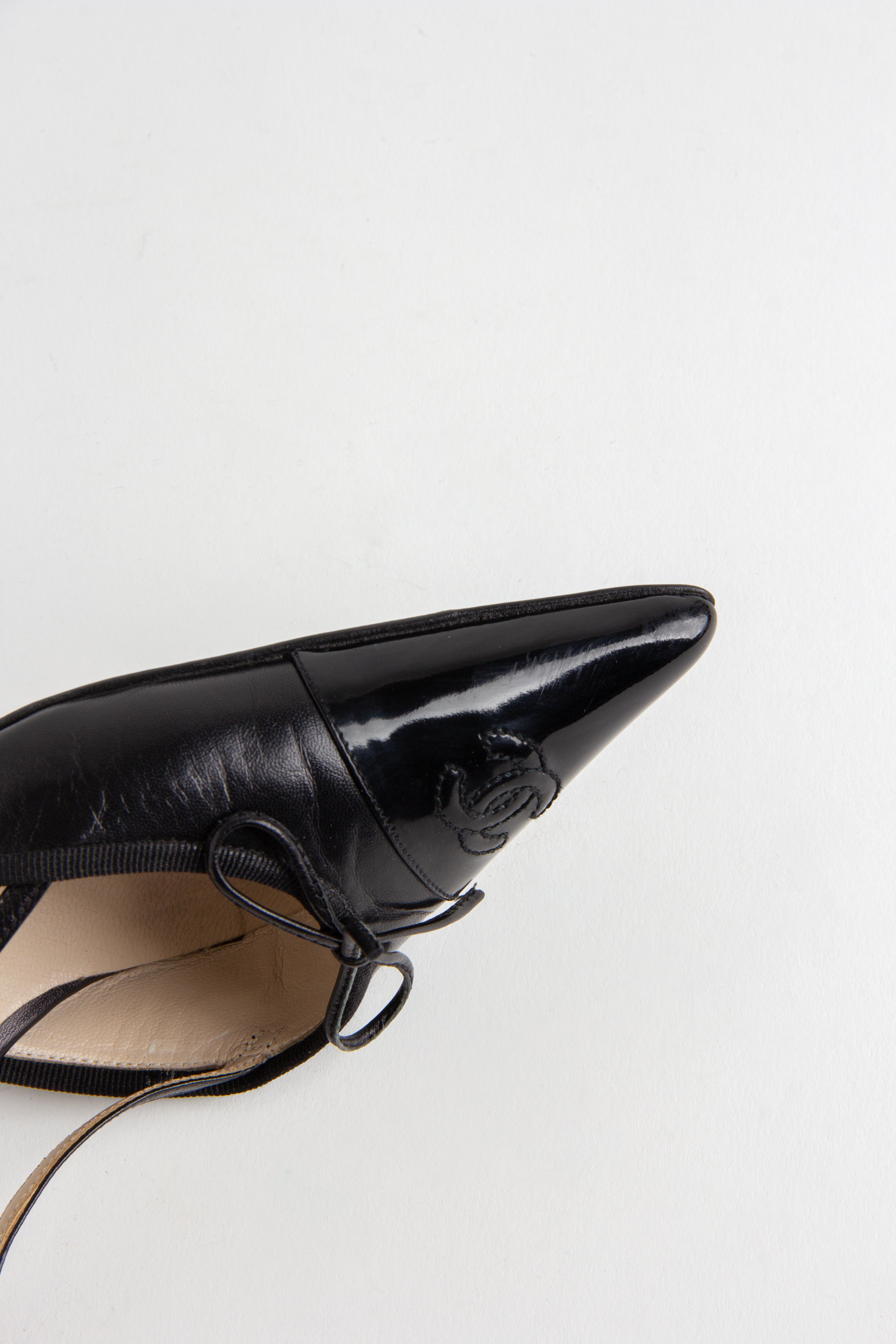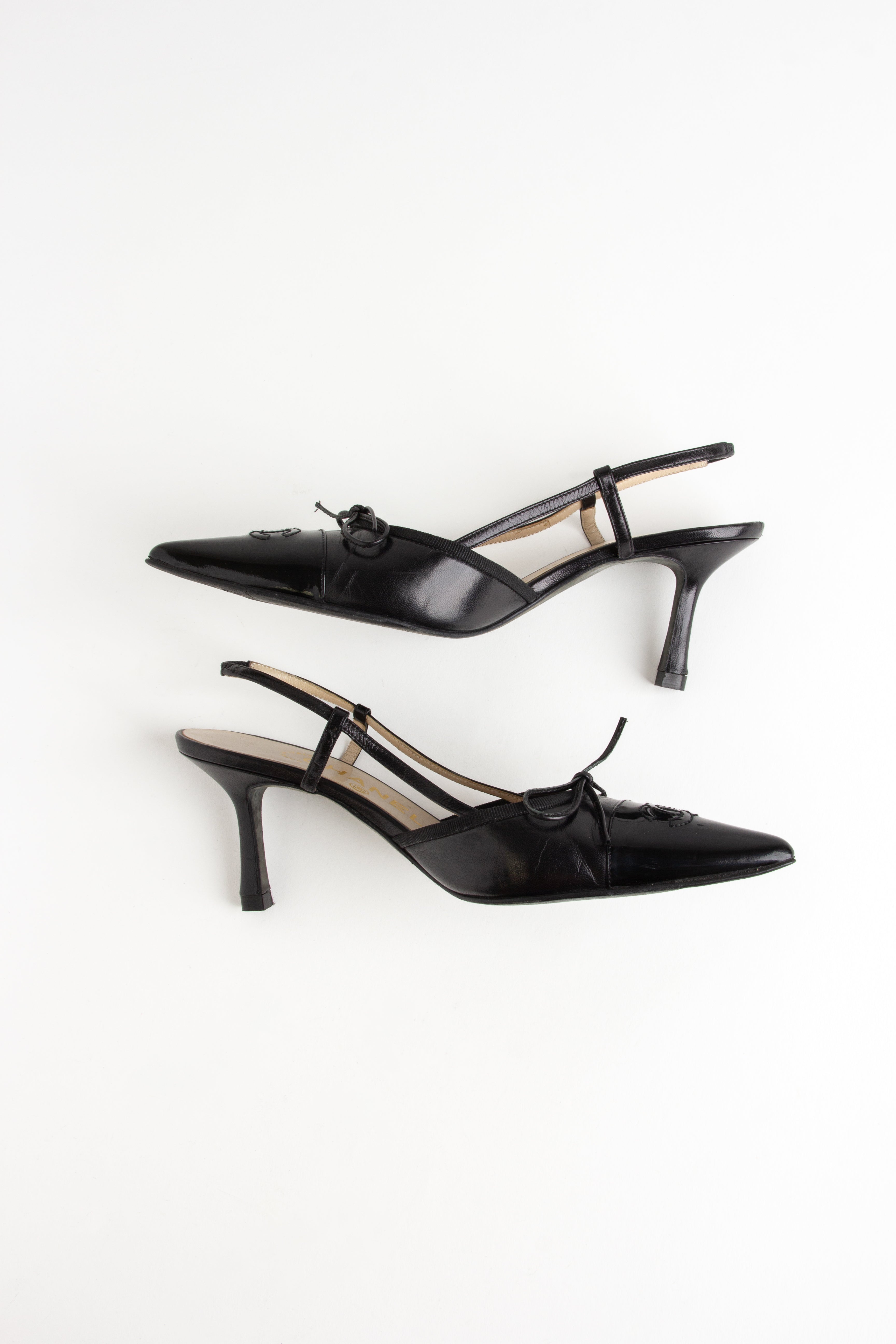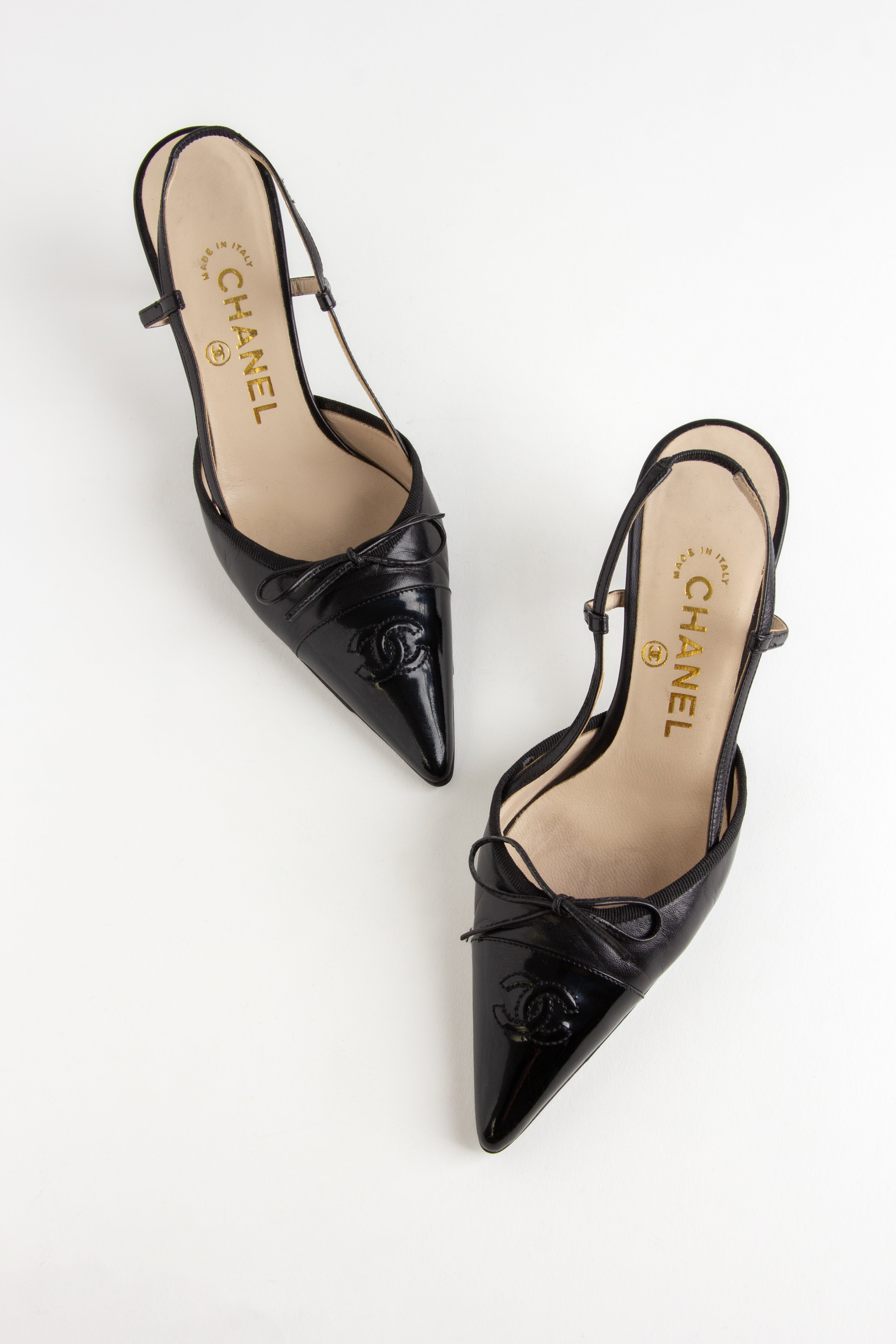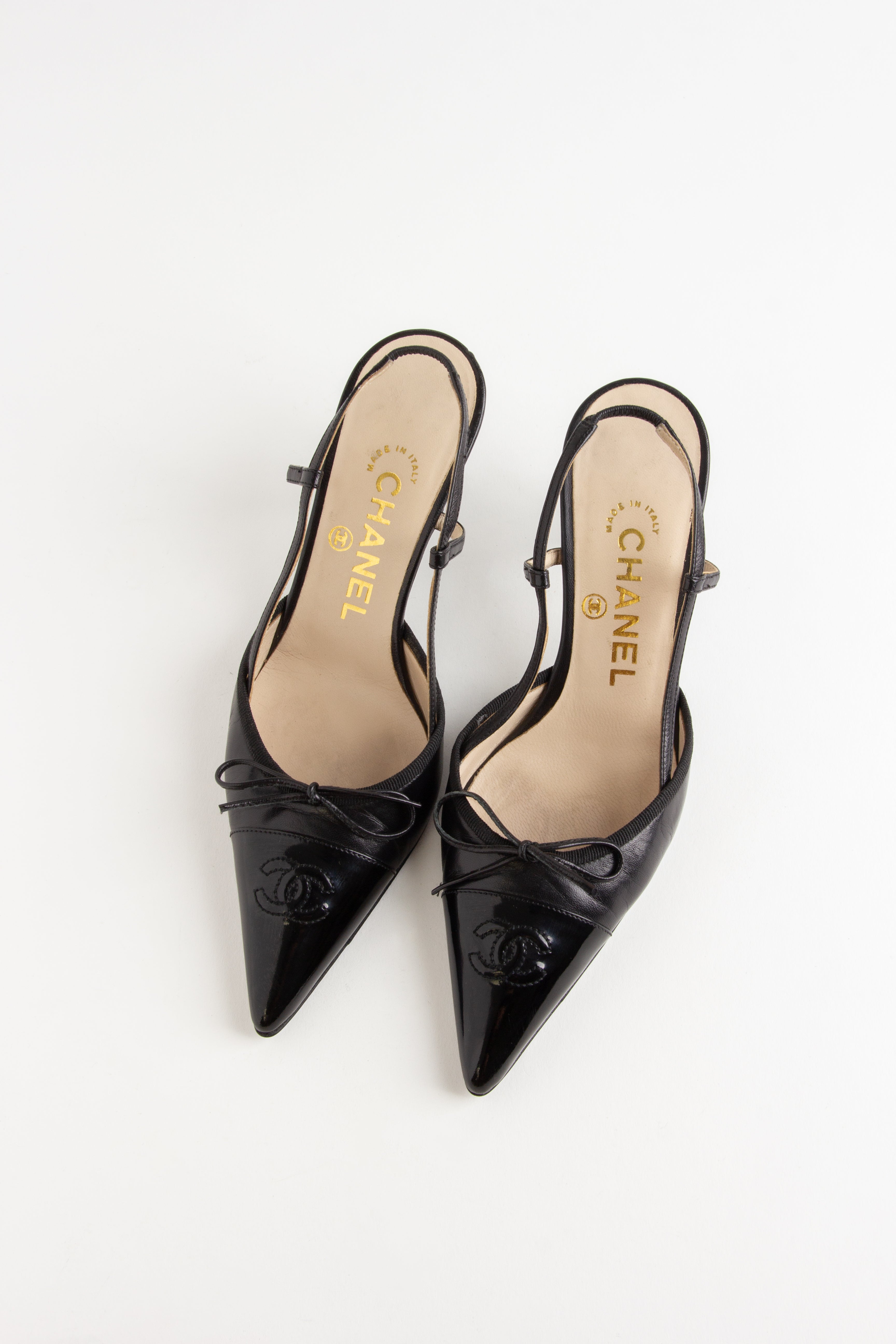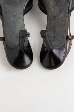 Chanel Black CC Bow Slingback Heels (IT 35.5)