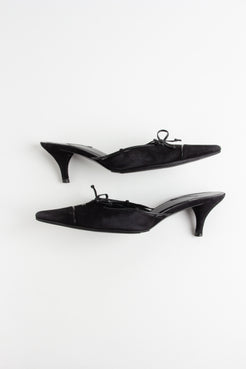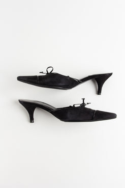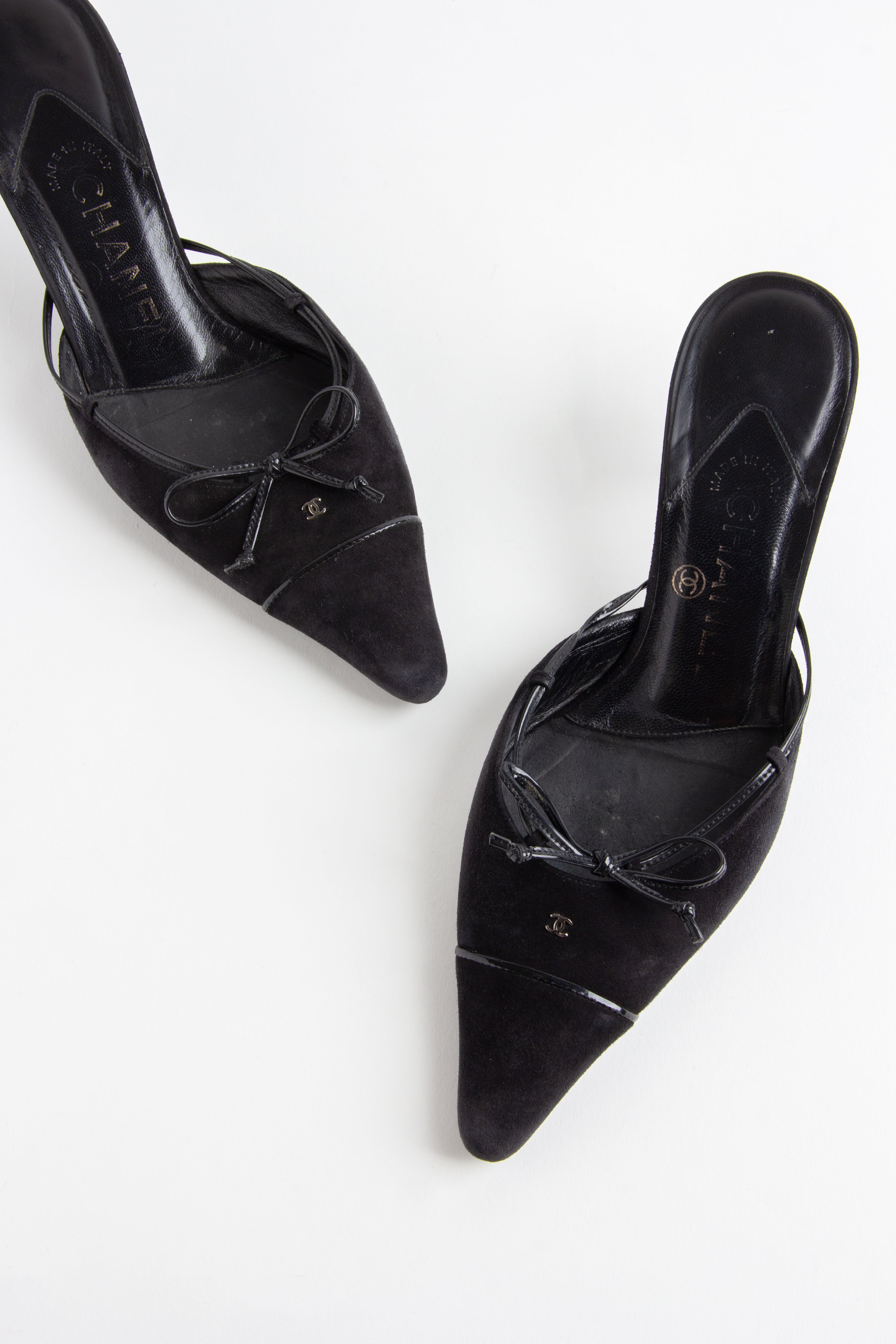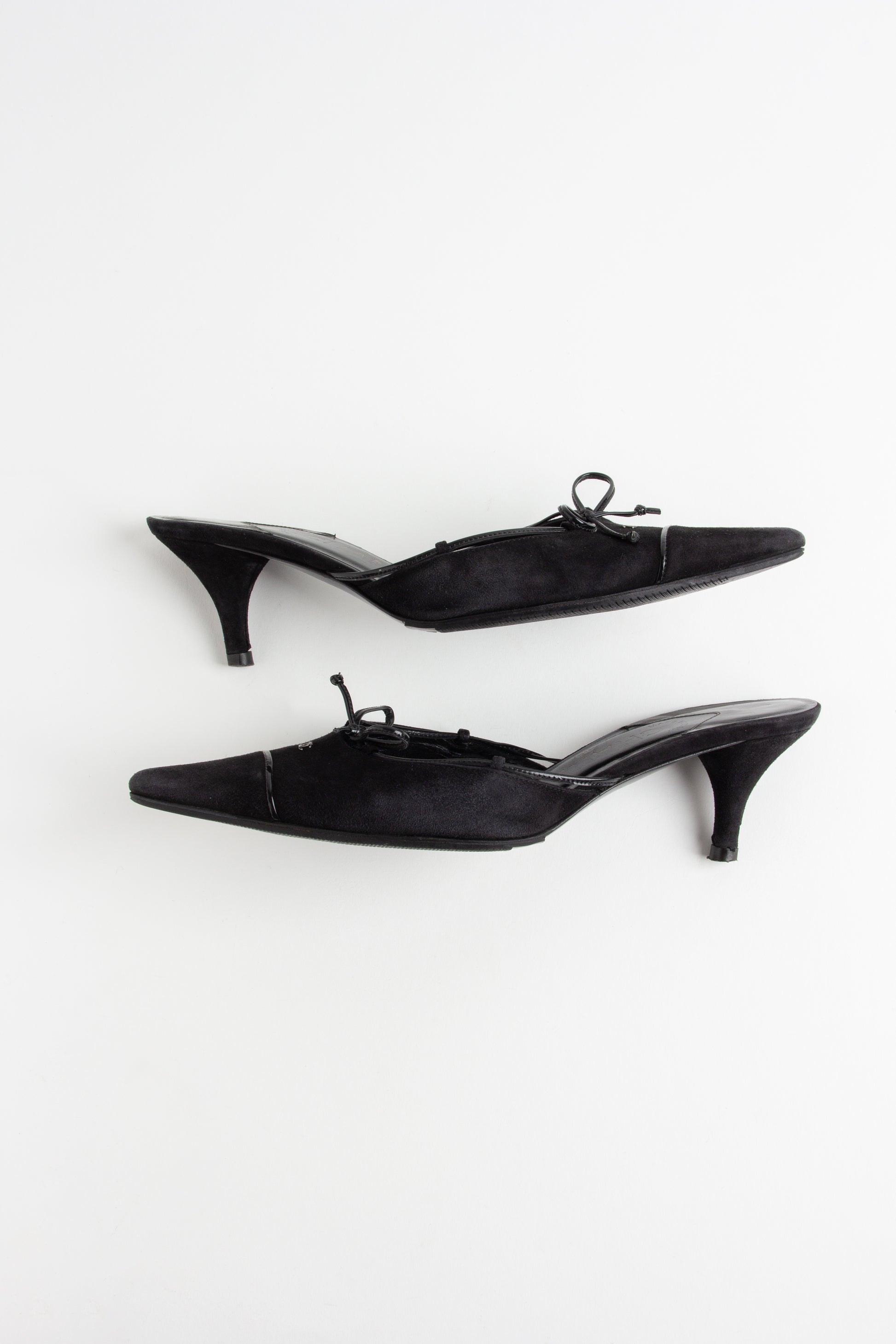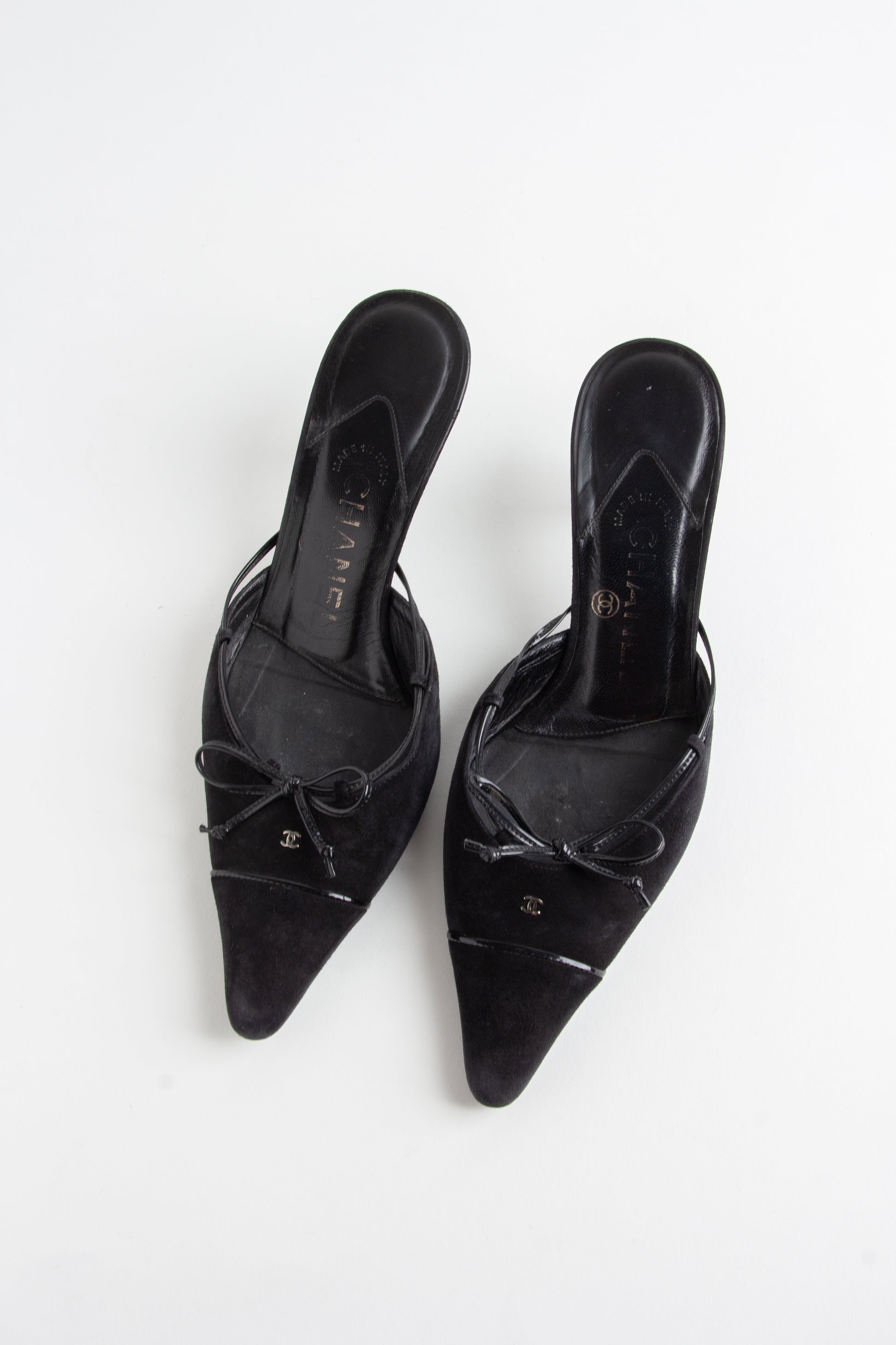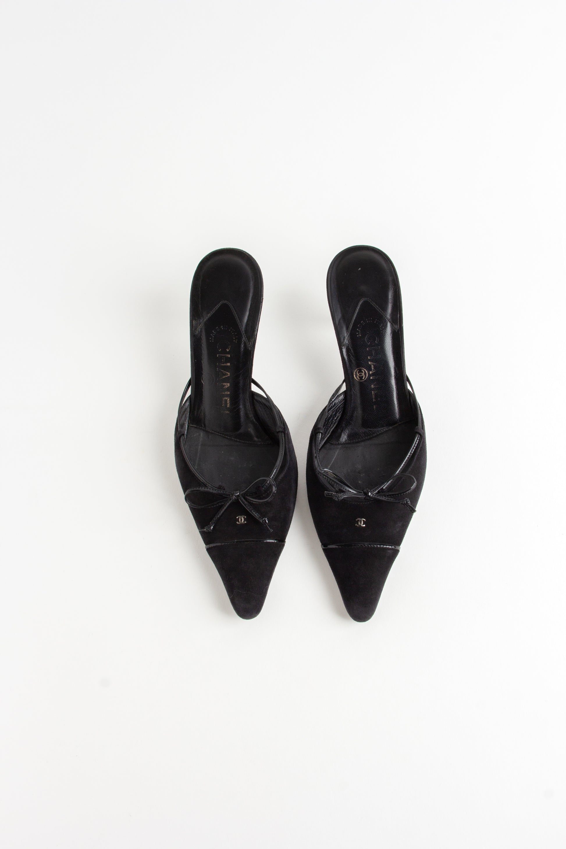 Chanel Black Suede CC Bow Mules (IT 35.5)