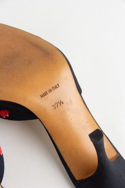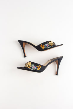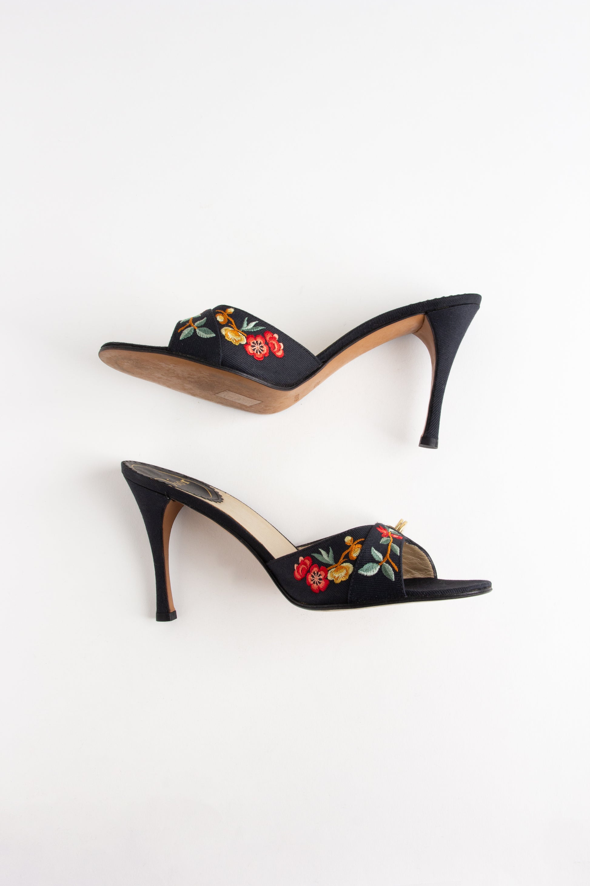 Dior Floral Embroidered Gold Charm Heels (IT 37.5)