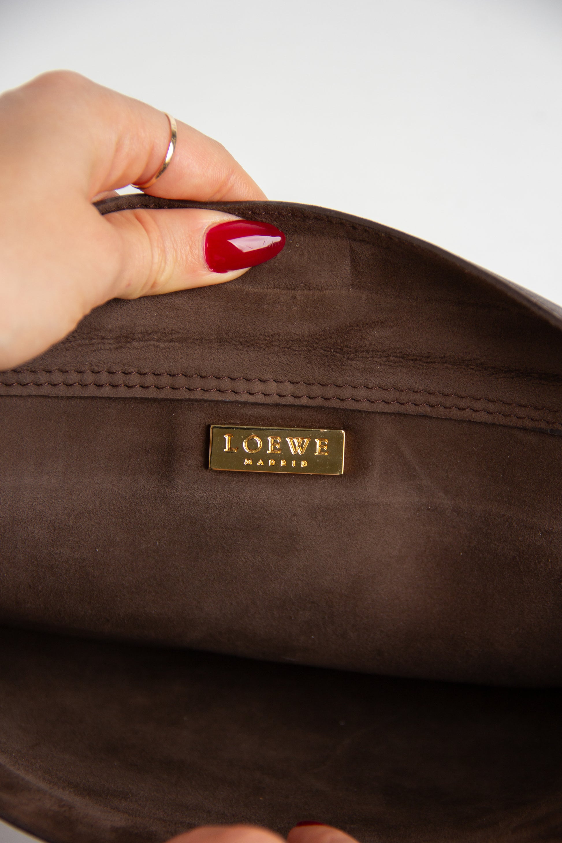 Chic Loewe dark brown buttery smooth leather clutch. Relaxed, unstructured style. Magnetic interior closure with a wo...
