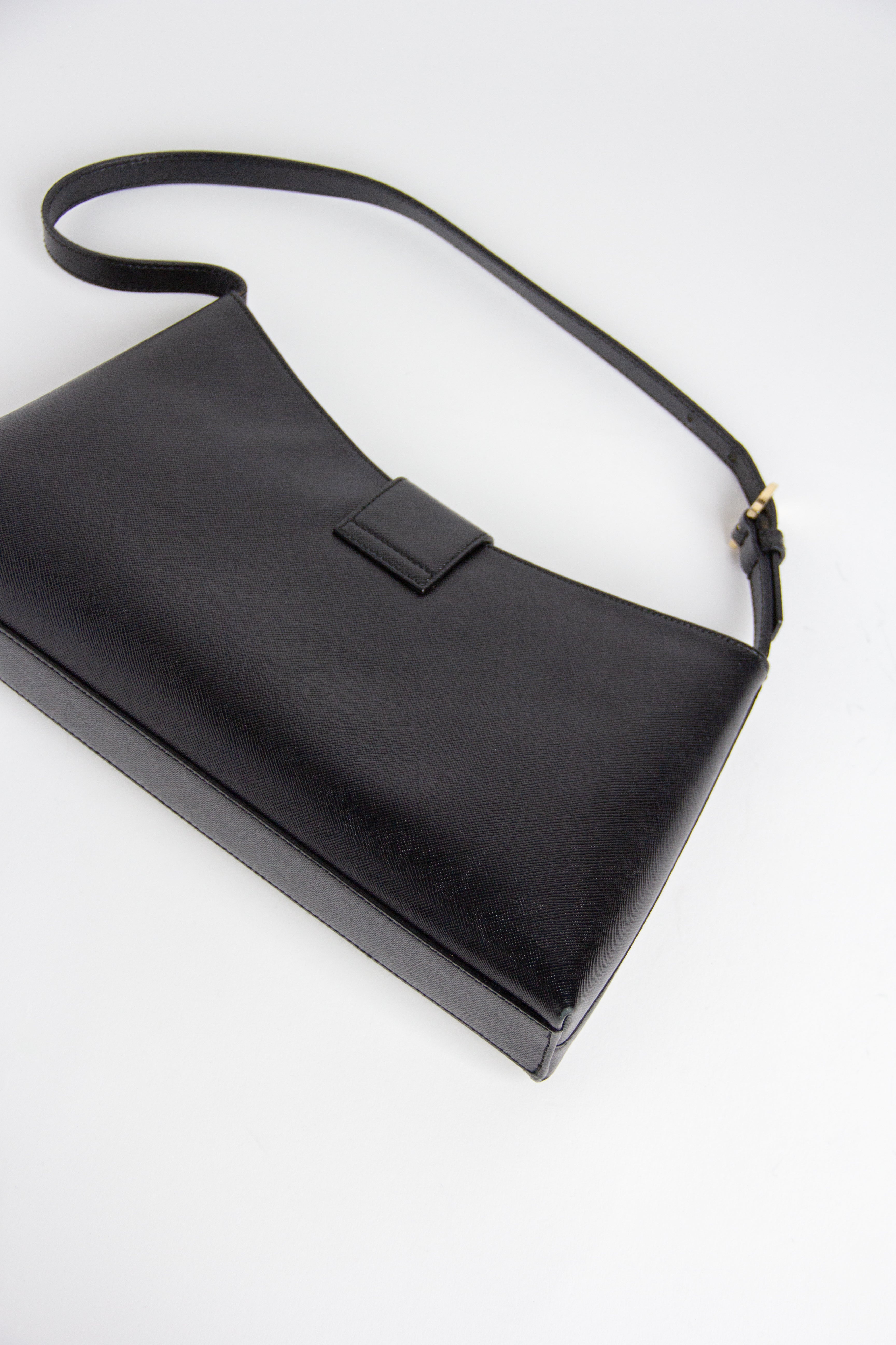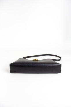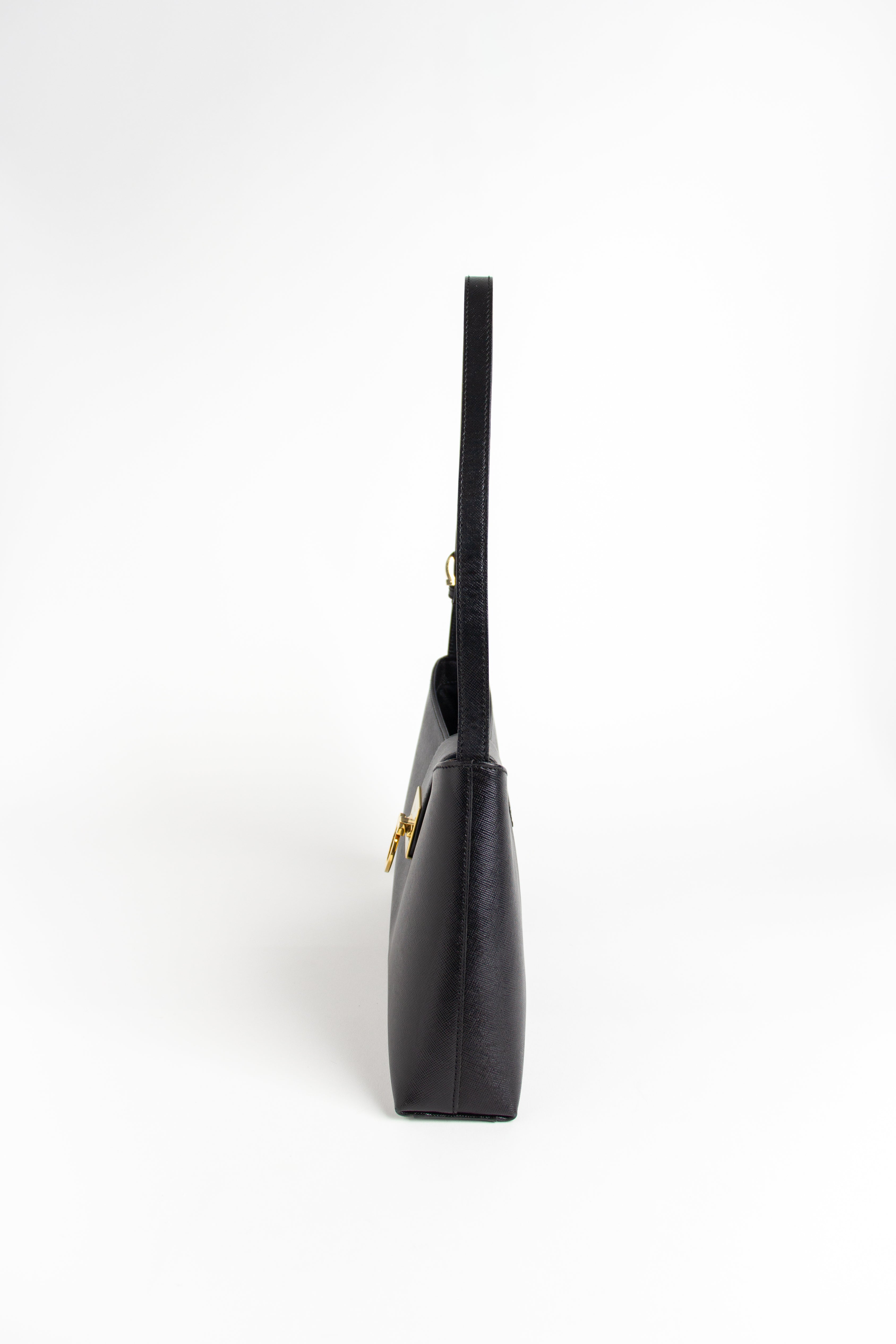 The perfect every day piece– minimalist style Salvatore Ferragamo black saffiano leather shoulder bag. Gold hardware ...