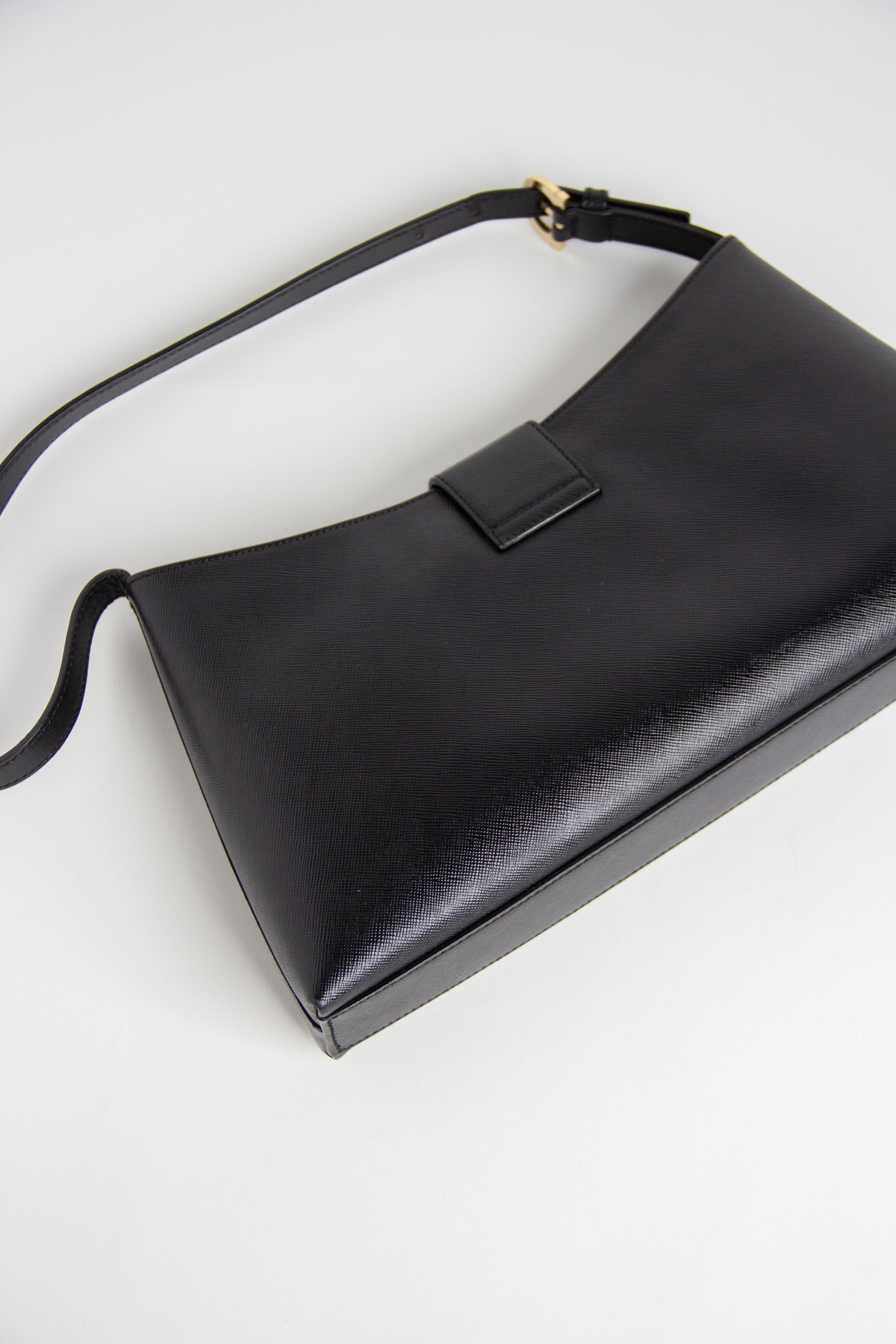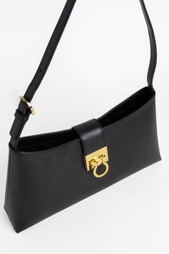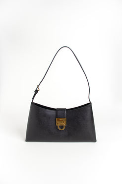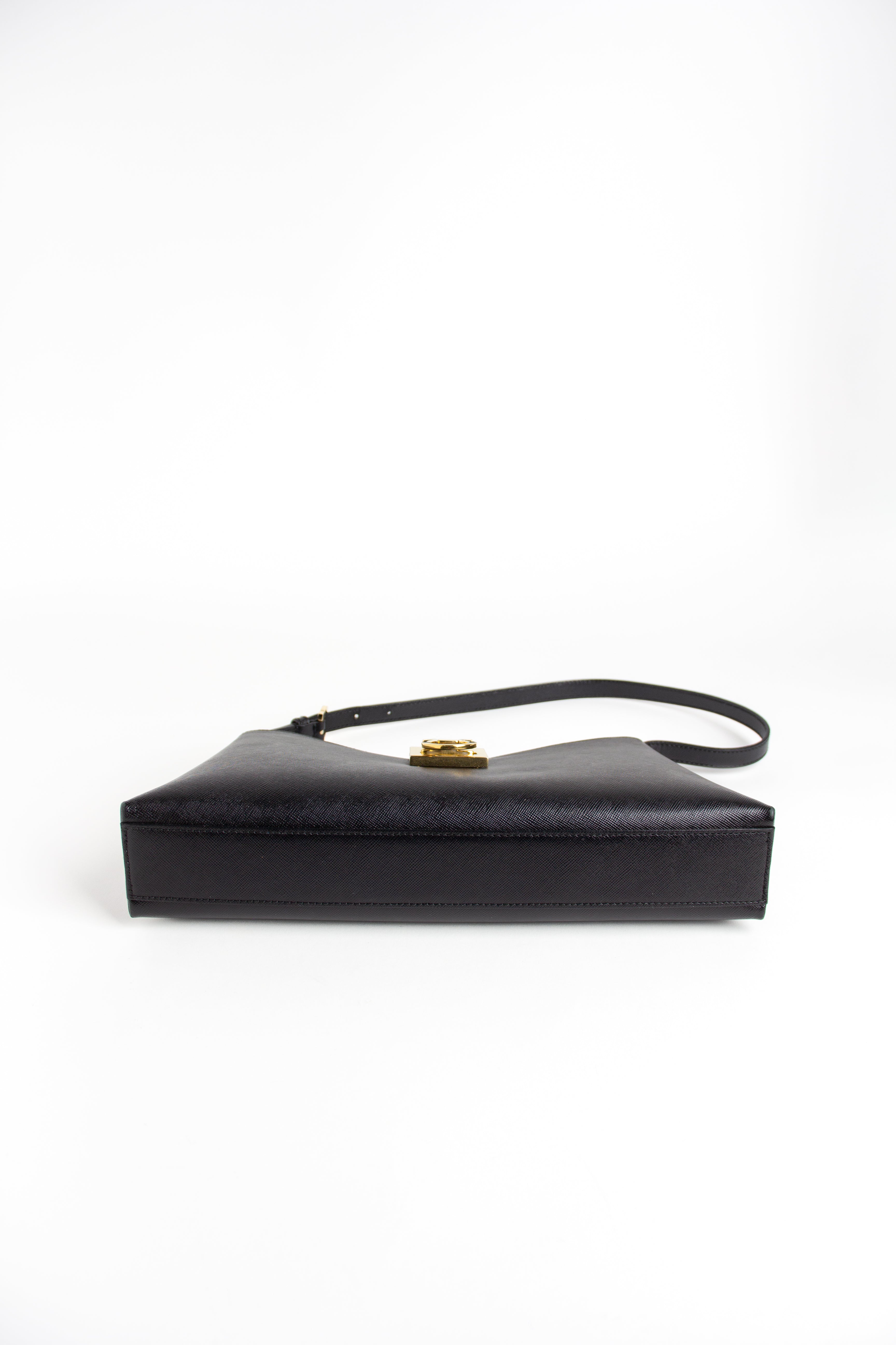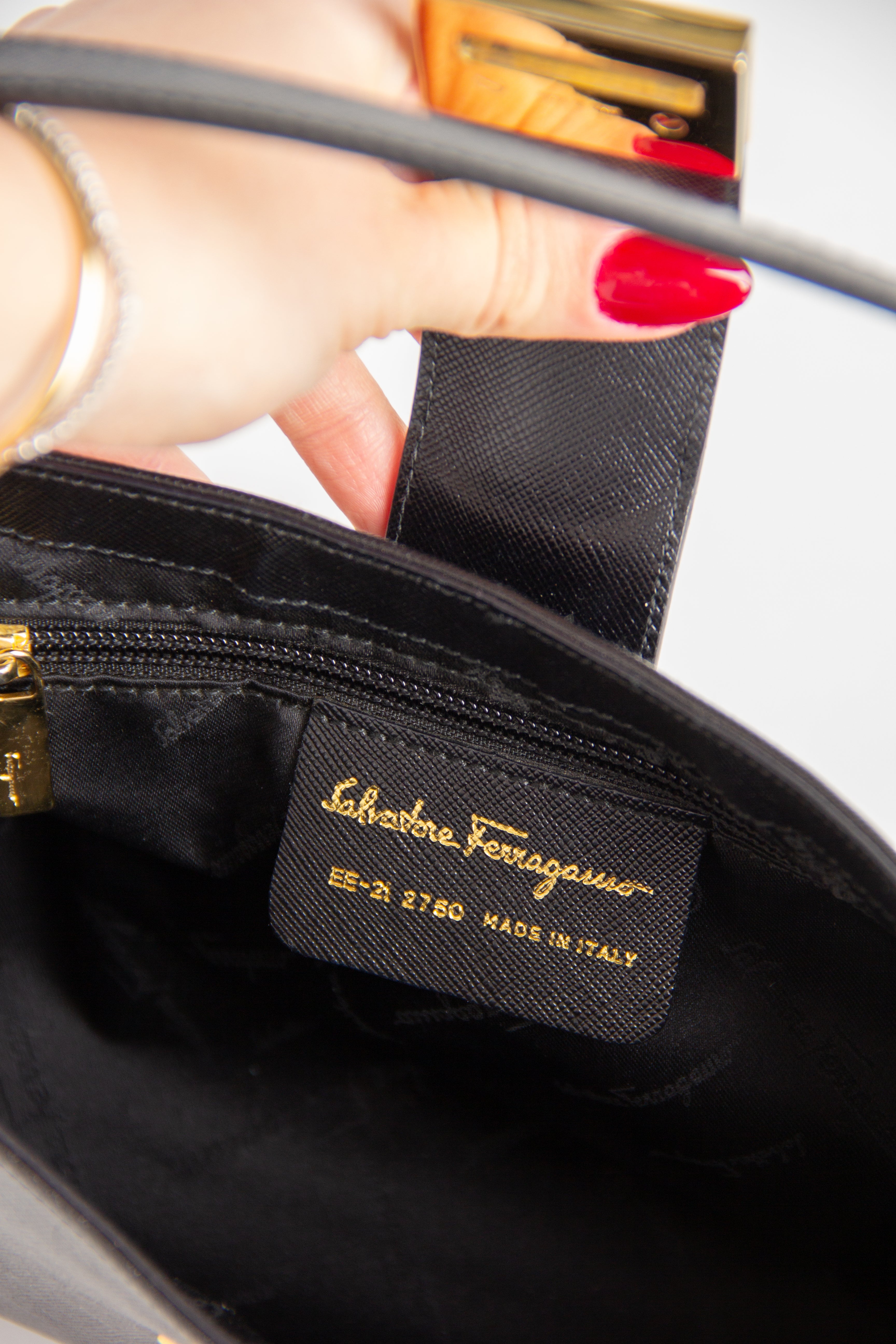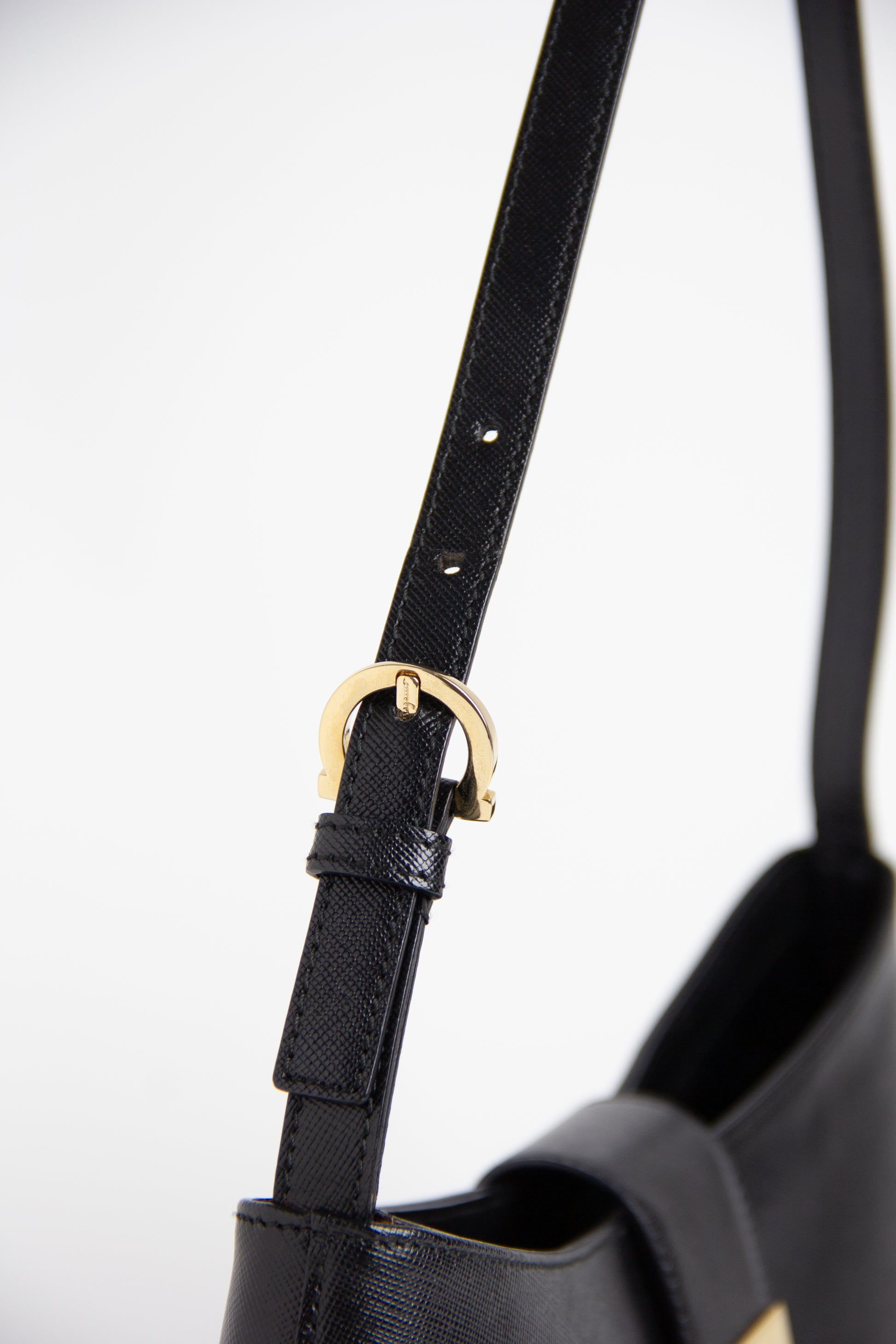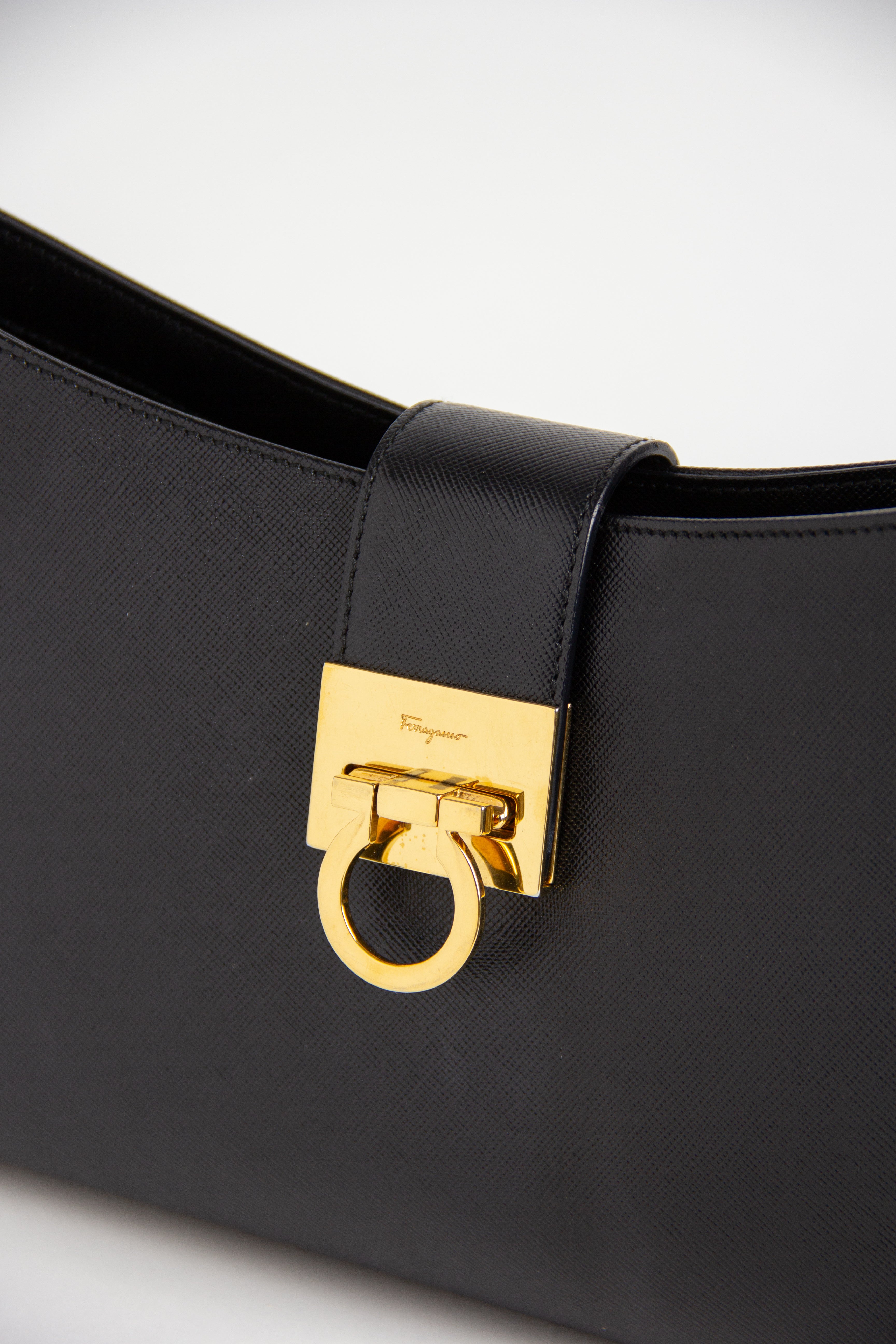 Salvatore Ferragamo Black Saffiano Leather Gancini Shoulder Bag