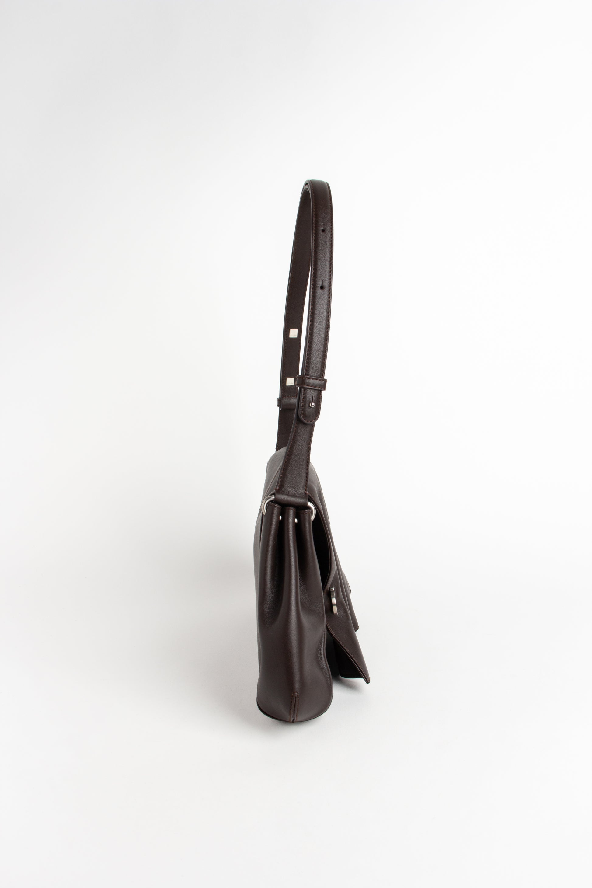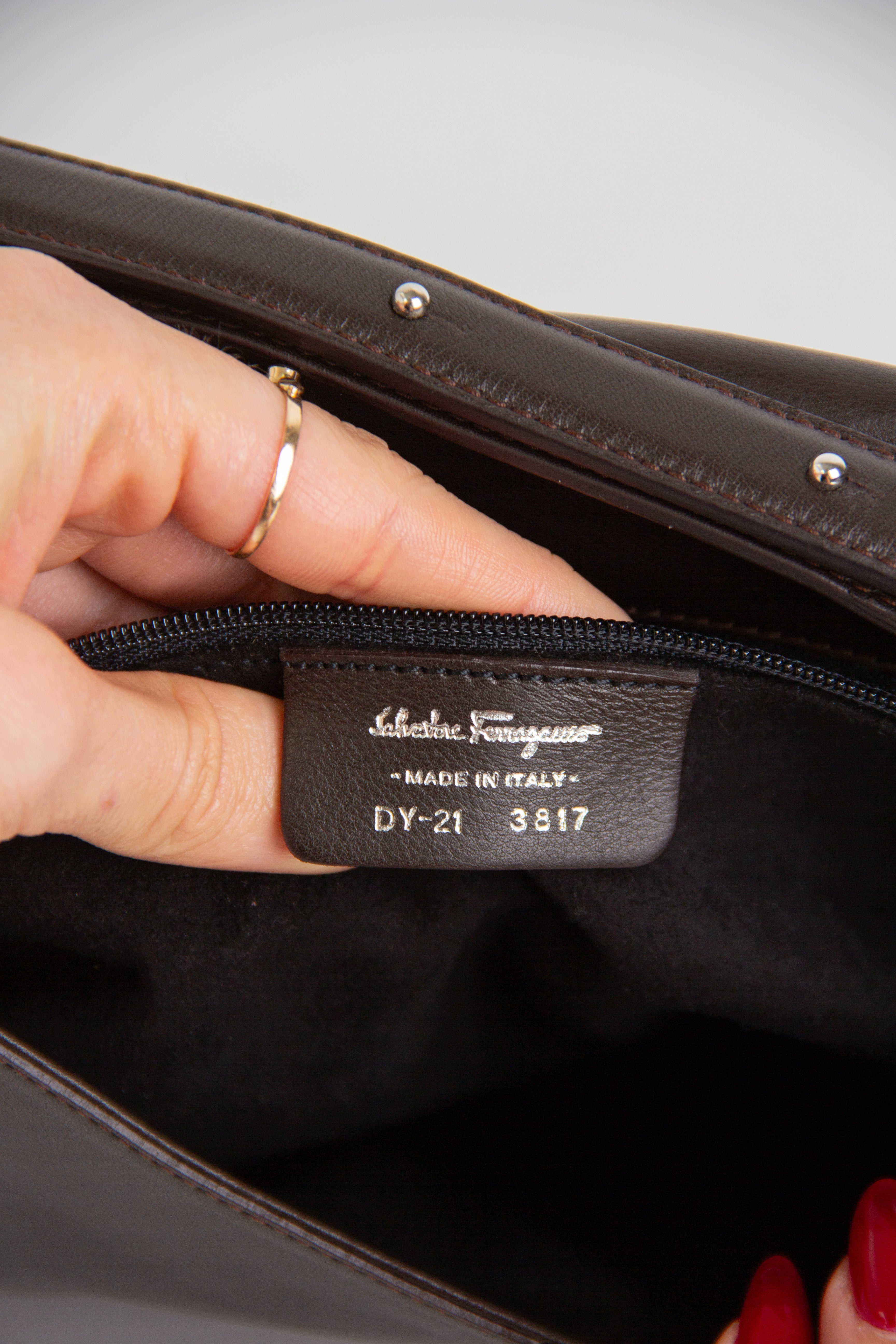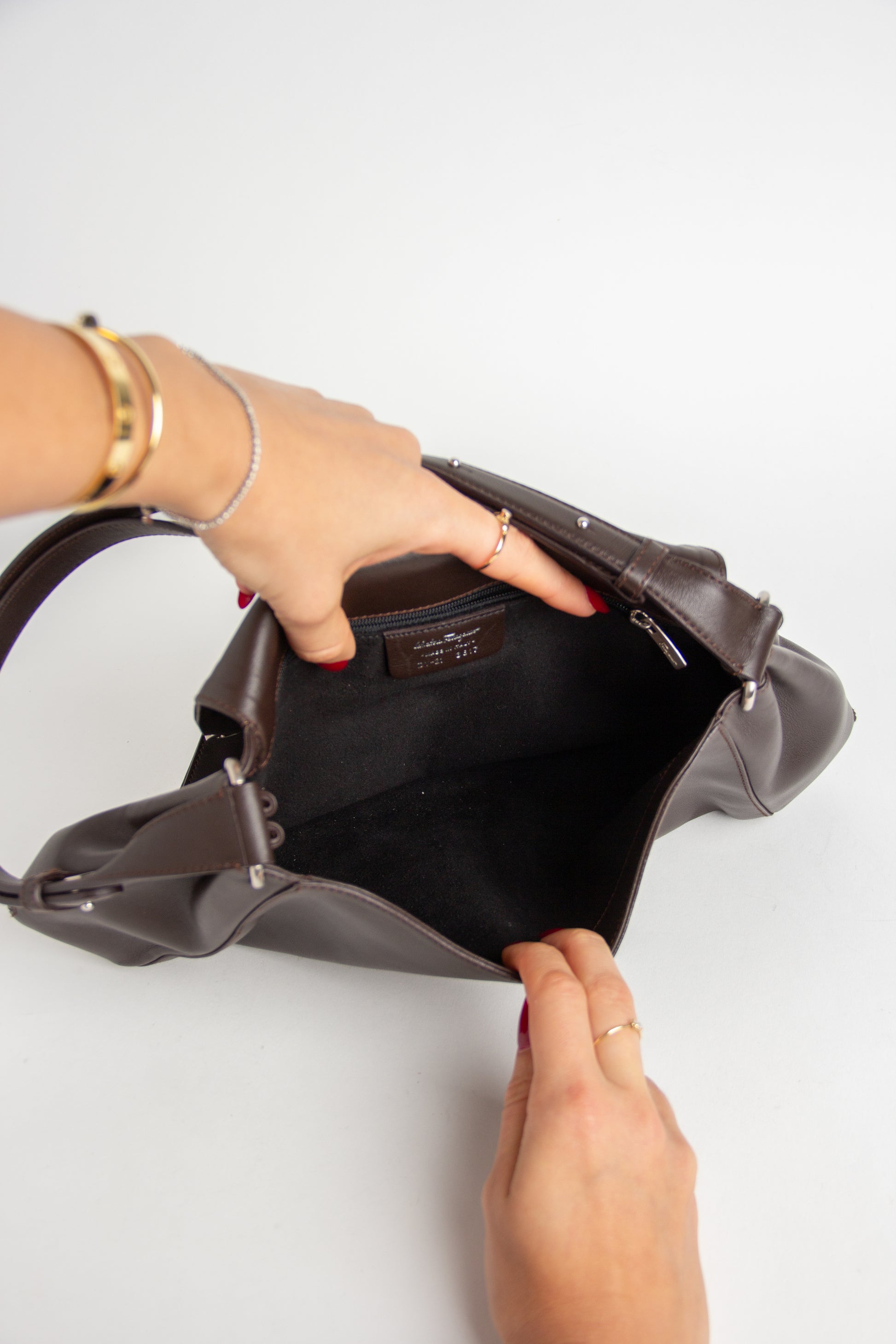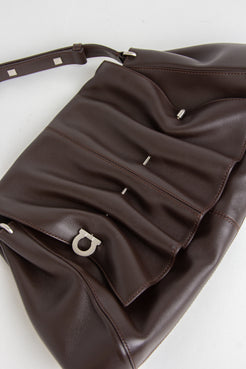 Salvatore Ferragamo Brown + Silver Gancini Shoulder Bag